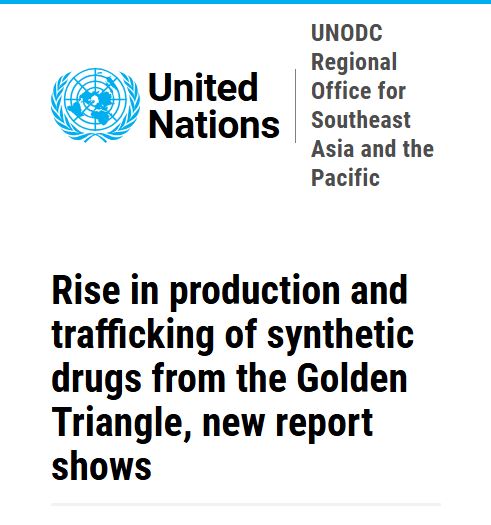 ការិយាល័យប្រឆាំងគ្រឿងញៀន និងឧក្រិដ្ឋកម្មរបស់អង្គការសហប្រជាជាតិ ហៅកាត់ថា UNODC បានឱ្យដឹងថា ការផលិត និងជួញដូរគ្រឿងញៀន នៅក្នុងតំបន់ត្រីកោណជាប់ព្រំដែន រវាងប្រទេសមីយ៉ាន់ម៉ា ឡាវ និងថៃ បានកើនឡើងគួរឱ្យកត់សម្គាល់ ខណៈប្រទេសថៃគឺជាច្រកផ្លូវឆ្លងកាត់ និងជាចំណុចគោលដៅមួយដ៏សំខាន់ សម្រាប់ចែកចាយគ្រឿងញៀនមួយផ្នែកធំលើសលុបចេញពីតំបន់ត្រីកោណមាស។
