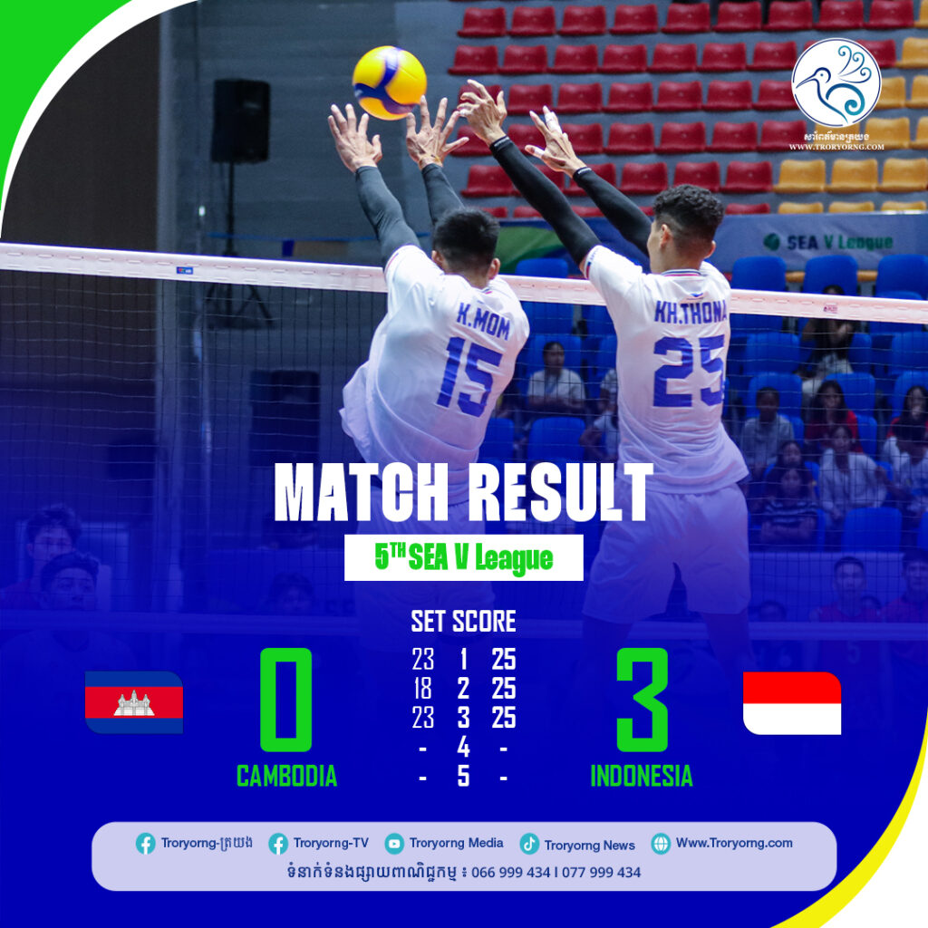 លទ្ធផល៣ប្រកួតកន្លងមករបស់ក្រុមបាល់ទះជម្រើសជាតិកម្ពុជា៖