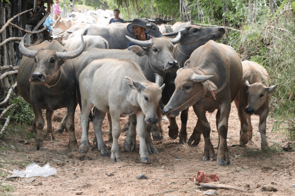 កំពង់ធំ៖ ប្រធានការិយាល័យផលិតកម្ម និងបសុព្យាបាលខេត្តដឹកនាំមន្ត្រីជំនាញខេត្តកំពង់ធំ ចុះយុទ្ធនាការចាក់វ៉ាក់សាំង ការពារជំងឺសាទឹកគោក្របី នៅភូមិថ្មអណ្តែត ឃុំជ្រលង ស្រុកតាំងគោក ខេត្តកំពង់ធំ នៅព្រឹកថ្ងៃទី១៥ ខែកក្កដា ឆ្នាំ២០២៥។