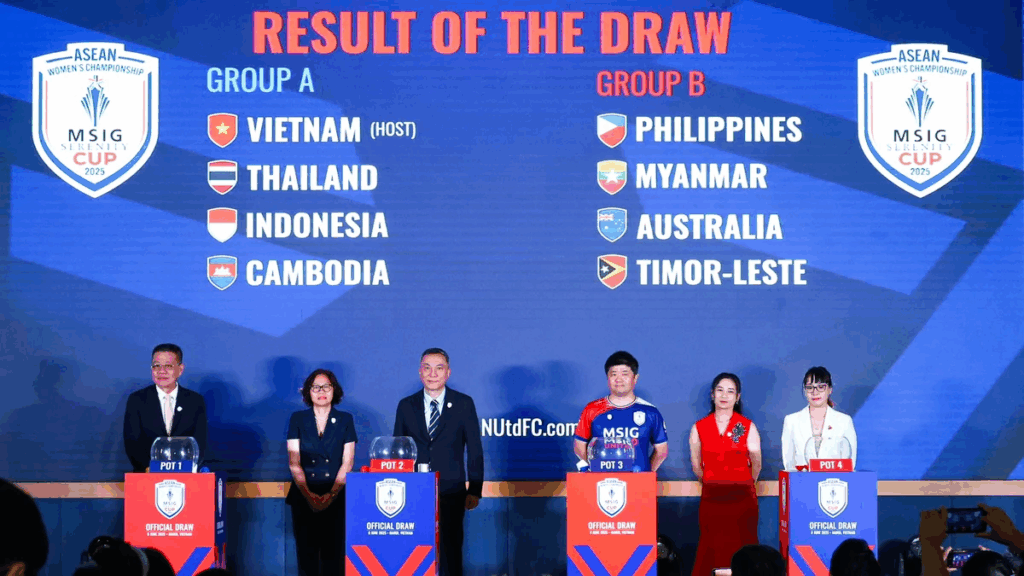 ដោយក្រុមជម្រើសជាតិនារីកម្ពុជា ស្ថិតនៅក្នុង Group A ជាមួយក្រុមជម្រើសជាតិថៃ, វៀតណាម និងឥណ្ឌូណេស៊ី ខណ:ពូល B មានក្រុមជម្រើសជាតិហ្វីលីពីន, មីយ៉ាន់ម៉ា អូស្ត្រាលី និងទីម័រខាងកើត។ ការប្រកួត នឹងប្រព្រឹត្តទៅចាប់ពីថ្ងៃទី០៦ ដល់ថ្ងៃទី១៩ ខែសីហា ឆ្នាំ២០២៥ នៅទីក្រុងហាយហ្វុង ប្រទេសវៀតណាម។