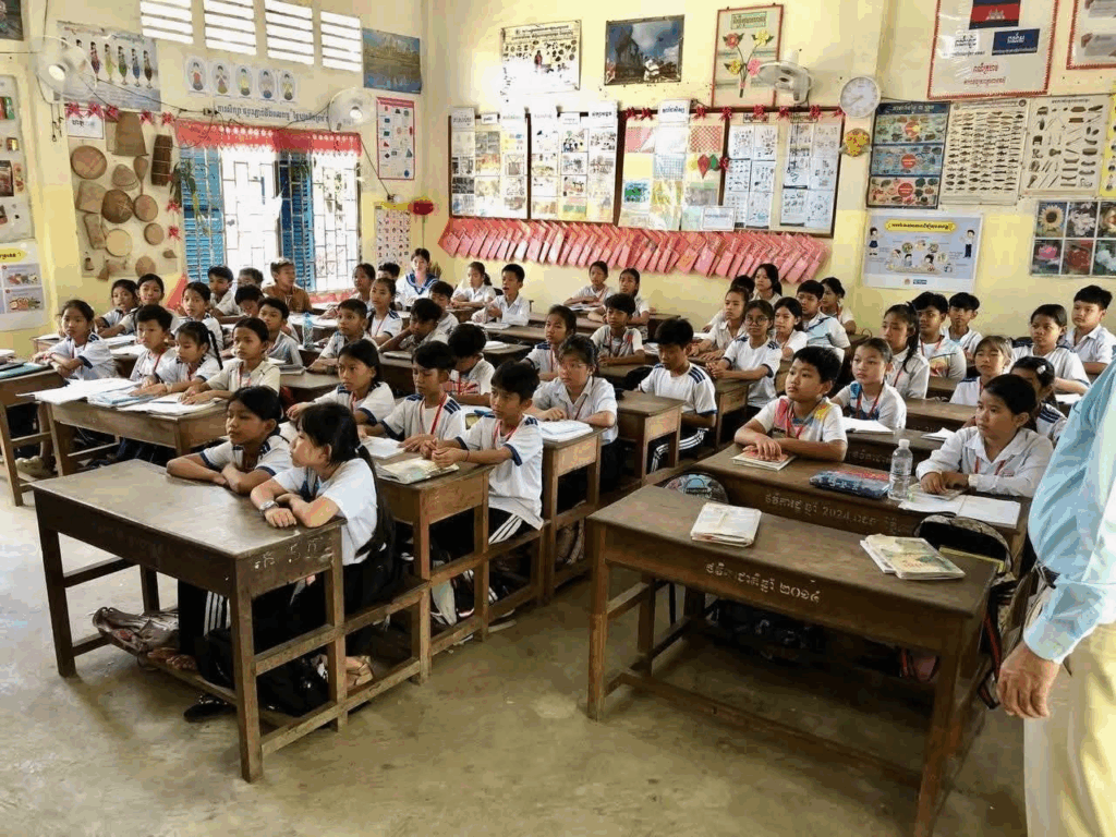 ភ្នំពេញ ៖ នគរបាលខណ្ឌកំបូល សហការណ៍ជាមួយលោកគ្រូ អ្នកគ្រូ ធ្វើការអប់រំ ផ្សព្វផ្សាយពីគោលនយោបាយភូមិ-សង្កាត់ មានសុវត្ថិភាព ដល់សិស្សានុសិស្ស នៅសាលាបឋមសិក្សាកំបូល ខណ្ឌកំបូល រាជធានីភ្នំពេញ កាលពីព្រឹកថ្ងៃទី០៨ ខែសីហា ឆ្នាំ២០២៥។