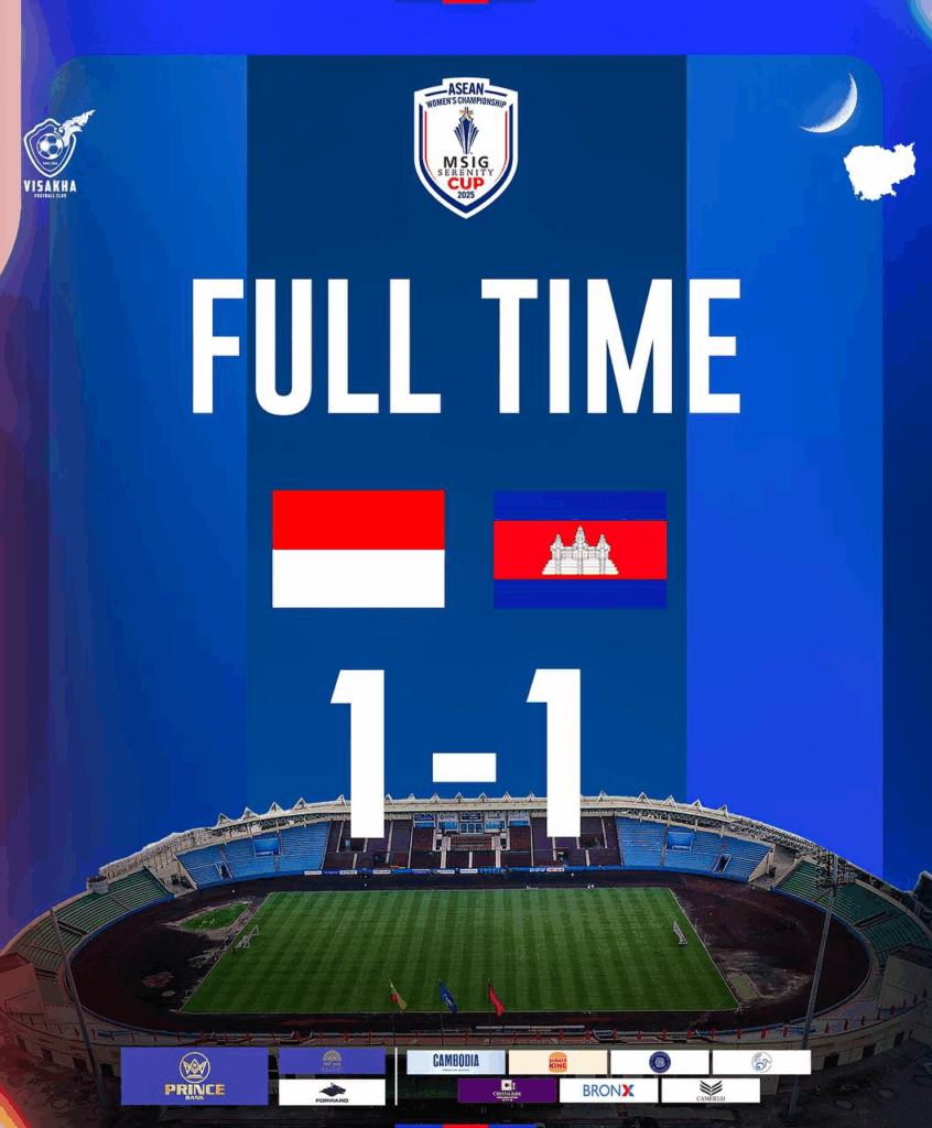 ប្រកួតចុងក្រោយរបស់ក្រុមជម្រើសជាតិនារីកម្ពជា ស្មើជាមួយក្រុមនារីឥណ្ឌូណេស៊ី ដោយលទ្ធផល ១-១ វគ្គជម្រុះក្នុងពូល A នៃពានរង្វាន់នារីកម្រិតទ្វីប ASEAN MSIG Serenity Cup ឆ្នាំ២០២៥ ដែលប្រទេសវៀតណាម ជាម្ចាស់ផ្ទះ។