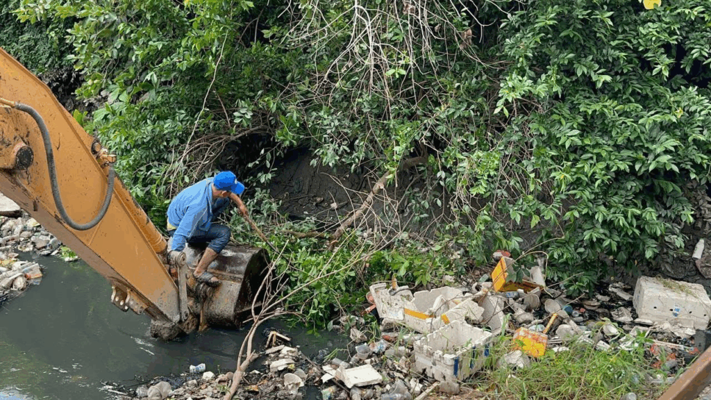 ភ្នំពេញ ៖ តំបន់ជាច្រើនក្នុងខណ្ឌពោធិ៍សែនជ័យ រួមទាំងសាលារៀនជម្ពូវ័ន ទាំងវិទ្យាល័យ ទាំងបឋមសិក្សា ត្រូវបានទឹកភ្លៀងជន់លិច បន្ទាប់ពីធ្លាក់ភ្លៀងប៉ុន្មានថ្ងៃជាប់គ្នាមកនេះ ហើយអាជ្ញាធរចុះពិនិត្យមើលស្ថានភាពនៃតំបន់ទឹកភ្លៀងជន់លិច និងមានចំណាត់ការ ដើម្បីបង្ហូររំដោះទឹកចេញ ។ នៅព្រឹកថ្ងៃទី១៦ ខែកញ្ញា ឆ្នាំ២០២៥នេះផងដែរ អាជ្ញាធរខណ្ឌពោធិ៍សែនជ័យ ដាក់គ្រឿងចក្រ កាយបារ ស្តារសំរាម ចេញពីប្រឡាយ នៅក្នុងភូមិចំការឪឡឹក២ សង្កាត់កាកាបទី២ ខណ្ឌពោធិ៍សែនជ័យ រាជធានីភ្នំពេញ ដើម្បីពន្លឿនចរន្តទឹកហូរ ។