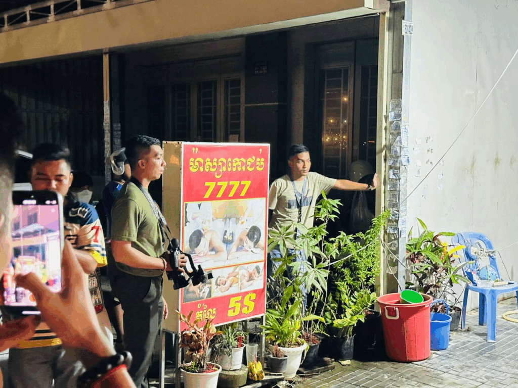 កម្លាំងអាវុធហត្ថរាជធានីភ្នំពេញសហការជាមួយអាវុធហត្ថខណ្ឌពោធិ៍សែនជ័យ ឆ្មក់បង្ក្រាបទីតាំងហាងម៉ាស្សាកោសជប់ពីរទីតាំងជាប់គ្នាដែលបង្កប់សេវាជួញដូរផ្លូវភេទ ឃាត់ខ្លួននារីបម្រើការម៉ាស្សាបានចំនួន៧នាក់ យកទៅកងរាជអាវុធហត្ថរាជធានីភ្នំពេញ ដេីម្បីធ្វេីការសាកសួរ និងបន្តតាមនីតិវិធីច្បាប់។