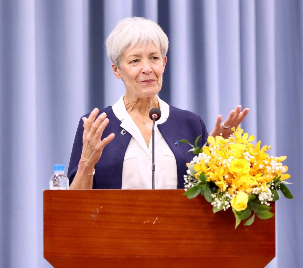 លោកជំទាវបានលើកយកលោកស្រី Claudie Haigneré ជាឧទាហរណ៍ថា៖ «ដូច្នេះសូមស្រ្តីកម្ពុជាយើងបន្តការខិតខំប្រឹងប្រែងរៀនសូត្រ ពង្រឹងសមត្ថភាពឱ្យបានរឹងមាំ»។