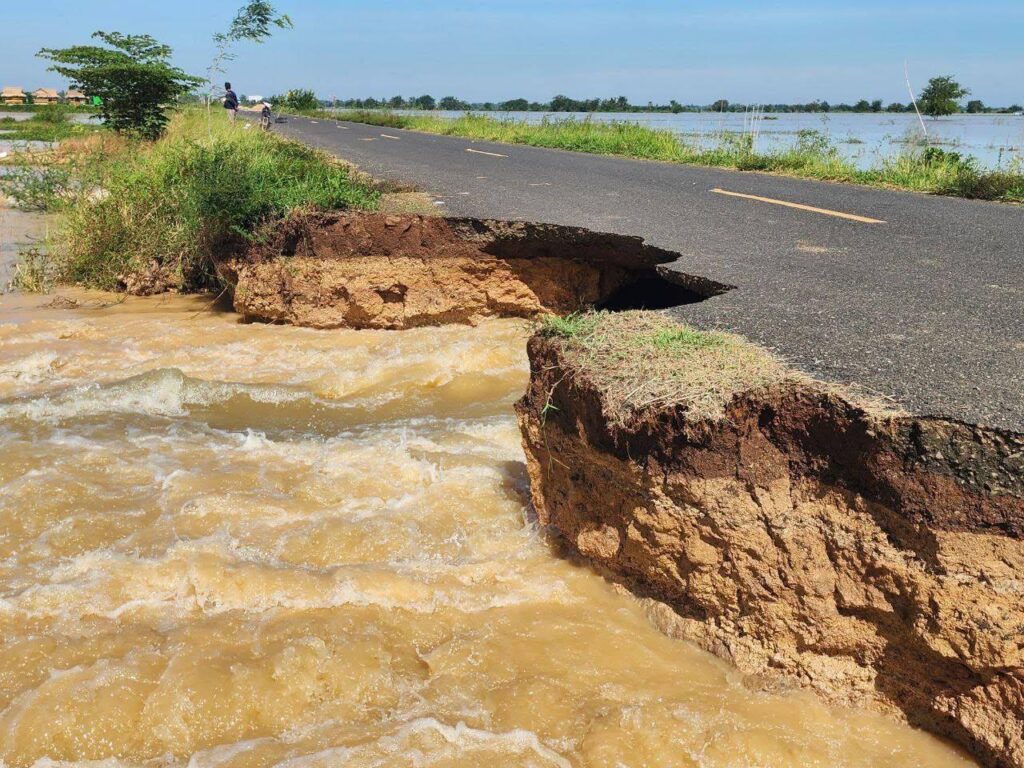 ការបិទផ្អាកចរាចរណ៍ជាបណ្តោះអាសន្នឆ្លងកាត់កំណាត់ផ្លូវខាងលើ ដោយសារស្ថានភាពទឹកទន្លេមេគង្គកើនឡើងខ្លាំង បណ្ដាល ឱ្យប៉ះពាល់កំណាត់ផ្លូវខេត្តលេខ ៣៨៣បេ ស្ថិតក្នុងភូមិតាំងស្នាយ ឃុំរកា ស្រុកពារាំង ខេត្តព្រៃវែង ដែល ស្ថានភាពបែបនេះធ្វើឱ្យផ្លូវថ្នល់មានសភាពហូរច្រោះ និងកាត់ផ្តាច់ មិនអាចធ្វើចរាចរណ៍បាន ។