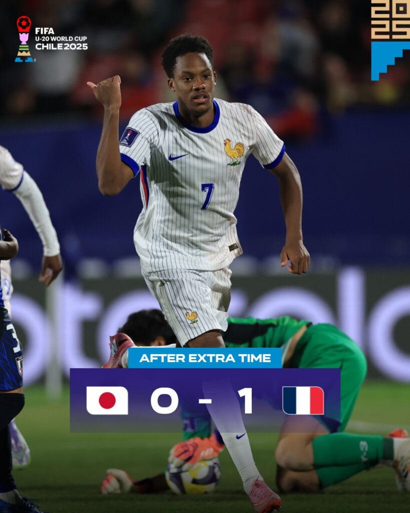 ក្រុមជម្រើសជាតិអាយុក្រោម ២០ឆ្នាំ ពីតំបន់អាស៊ី ជប៉ុន បានបរាជ័យក្រោមថ្មីដៃរបស់បារាំង ក្នុងវគ្គ១៦ក្រុមចុងក្រោយ ព្រឹត្តិការណ៍កីឡាករបាល់ទាត់ពានរង្វាន់ FIFA U-20 World Cup ឆ្នាំ២០២៥ នៅថ្ងៃទី៨ តុលា ២០២៥។