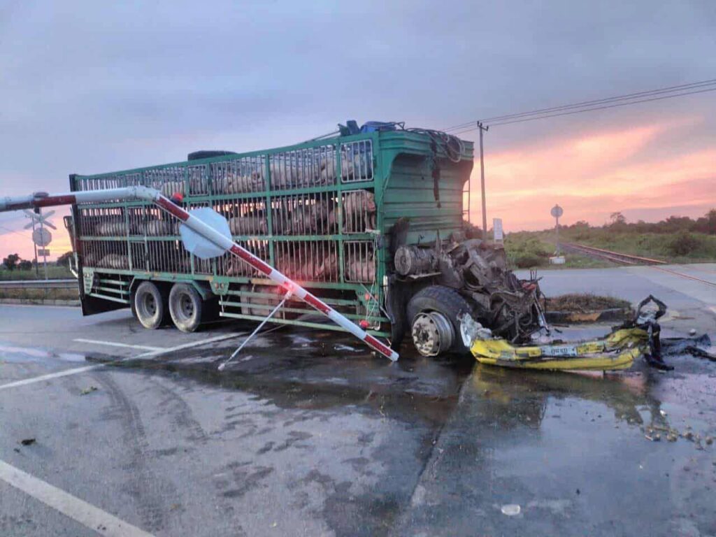 តាមប្រជាពលរដ្ឋបានឱ្យដឹងថា មុនកើតហេតុ ចំណុចផ្លូចខាងលើ បានដាក់បារ៉ាស់ហាមឃាត់ ព្រោះមានរថភ្លើងឆ្លងកាត់ ស្រាប់តែរថយន្តដឹកជ្រូក ម៉ាកហុីយ៉ាន់ដាយ ពណ៌លឿង ពាក់ស្លាកលេខ ភ្នំពេញ 3F-3307 បើកពីកើតទៅលិច ជ្រុលបុកធ្លាយបារ៉ាស់ បន្តទៅបុកផ្ទប់រថភ្លើងកំពុងបើកពីត្បូងទៅជើង បណ្តាលឱ្យរងរខូចខាតខ្ទេចកាប៊ីនរថយន្ត របួសធ្ងន់ស្រាល៣នាក់ ។