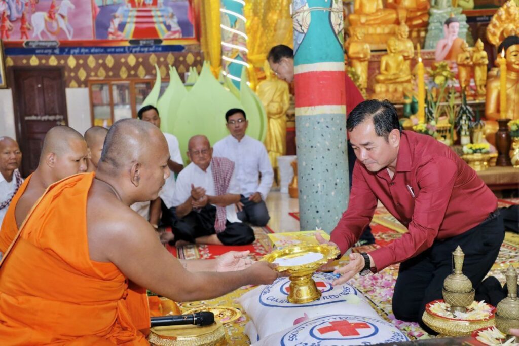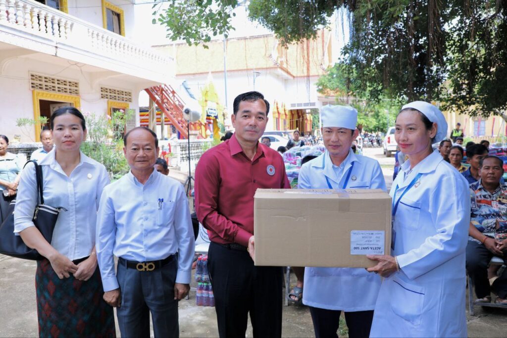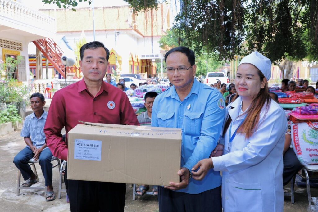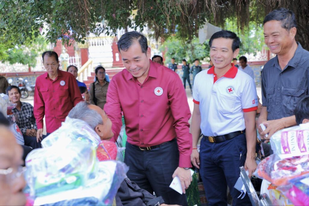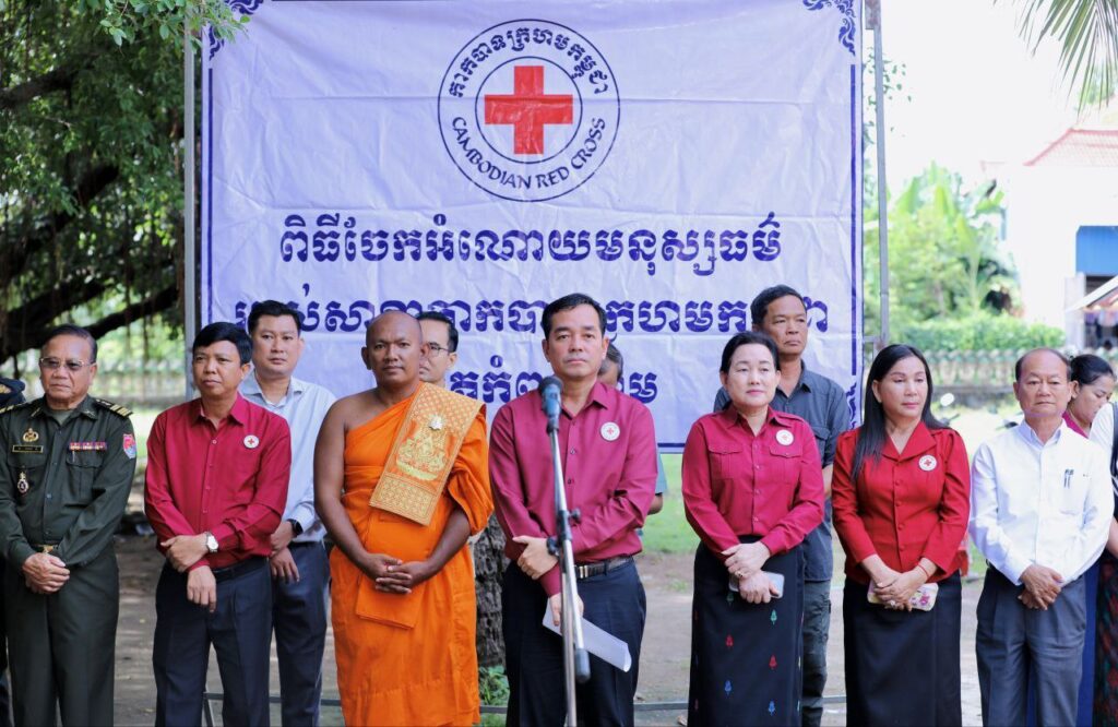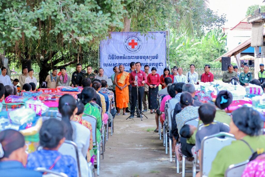 កំពង់ចាម៖ ប្រធានគណៈកម្មាធិការសាខាកាកបាទក្រហមកម្ពុជាខេត្តកំពង់ចាម បានដឹកនាំក្រុមការងារកាកបាទក្រហមខេត្ត ចុះចែកអំណោយមនុស្សធម៌របស់ សម្តេចកិត្តិព្រឹទ្ធបណ្ឌិត ប៊ុន រ៉ានី ហ៊ុន សែន ប្រធានកាកបាទក្រហមកម្ពុជា ជូនប្រជាពលរដ្ឋរងគ្រោះដោយទឹកជំនន់ និងបាក់ច្រាំងទន្លេ ចំនួន ៥៤គ្រួសារ នៅស្រុកកំពង់សៀម ខេត្តកំពង់ចាម។