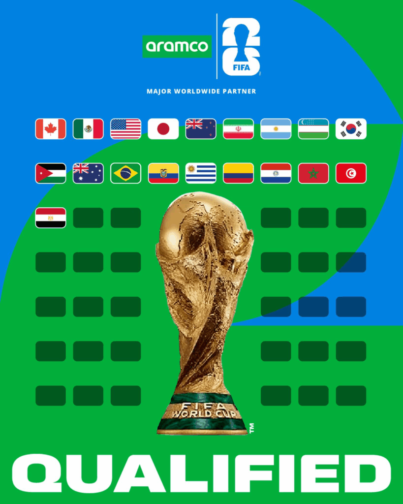នេះជាក្រុមដែលកក់កៅអីទៅ FIFA World Cup ឆ្នាំ២០២៦៖ (ថ្ងៃទី១០ ខែតុលា ឆ្នាំ២០២៥)