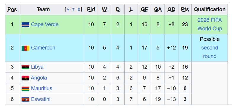ដូចនេះ គិតត្រឹមថ្ងៃទី១៤ តុលានេះ សម្រាប់ការប្រកួតជម្រុះពីទ្វីបអាហ្វ្រិក មានក្រុមជម្រើសជាតិចំនួន ៦ហើយដែលបានឈានជើងឡើងមកកាន់ជុំផ្ដាច់ព្រ័ត្រ World Cup 2026 រួមមានក្រុមជម្រើសជាតិកាប់វ៉ែ ម៉ារ៉ុក ទុយនីស៊ី អេហ្ស៊ីប អាល់ហ្សេរី និងហ្គាណា៕