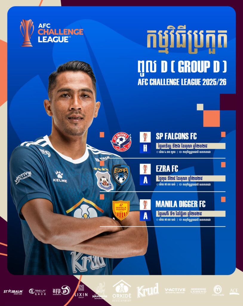 ពានរង្វាន់ AFC Challenge League ២០២៥-២៦ Group Stage វគ្គចែកពូល (តំបន់ខាងកើត) នឹងចាប់ផ្តើមការប្រកួតដំបូងនៅថ្ងៃទី២៦ ខែតុលា ដោយក្រុមតំណាងកម្ពុជា មានចំនួន២គឺព្រះខ័នរាជស្វាយរៀង និងភ្នំពេញក្រោន។