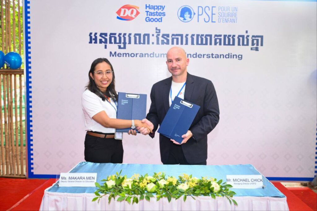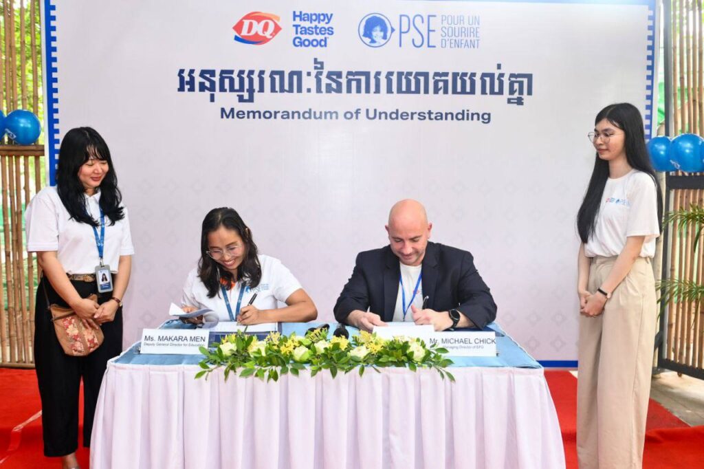 នៅថ្ងៃទី 14 ខែតុលា ឆ្នាំ 2025 Dairy Queen Cambodia និងអង្គការ Pour un Sourire d’Enfant (PSE) បានរៀបចំពិធីចុះហត្ថលេខាលើអនុស្សរណៈនៃការយោគយល់ (MOU) ដោយផ្លូវការដើម្បីសម្គាល់ការចាប់ផ្តើមនៃការសហការដ៏មានអត្ថន័យក្នុងគោលបំណងគាំទ្រកុមារនៅកម្ពុជា។