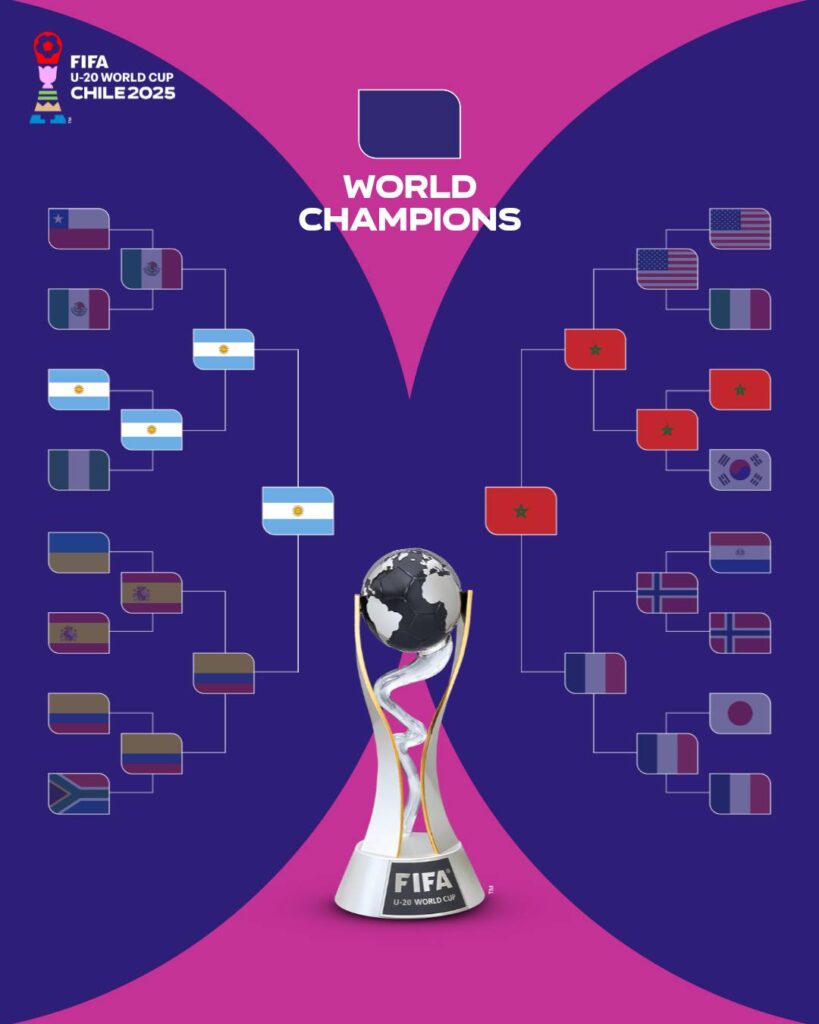 ក្រុមជម្រើសជាតិអាហ្សង់ទីន អាយុក្រោម ២០ឆ្នាំ នឹងត្រូវជួបក្រុមជម្រើសជាតិម៉ារ៉ុក អាយុក្រោម ២០ឆ្នាំ នៃពានរង្វាន់បាល់ទាត់ពិភពលោក អាយុក្រោម ២០ឆ្នាំ FIFA U-20 World Cup ឆ្នាំ២០២៥ នៅថ្ងៃទី១៩ តុលា ២០២៥ នៅទឹកដីទីក្រុង Santiago ប្រទេសឈីលី។