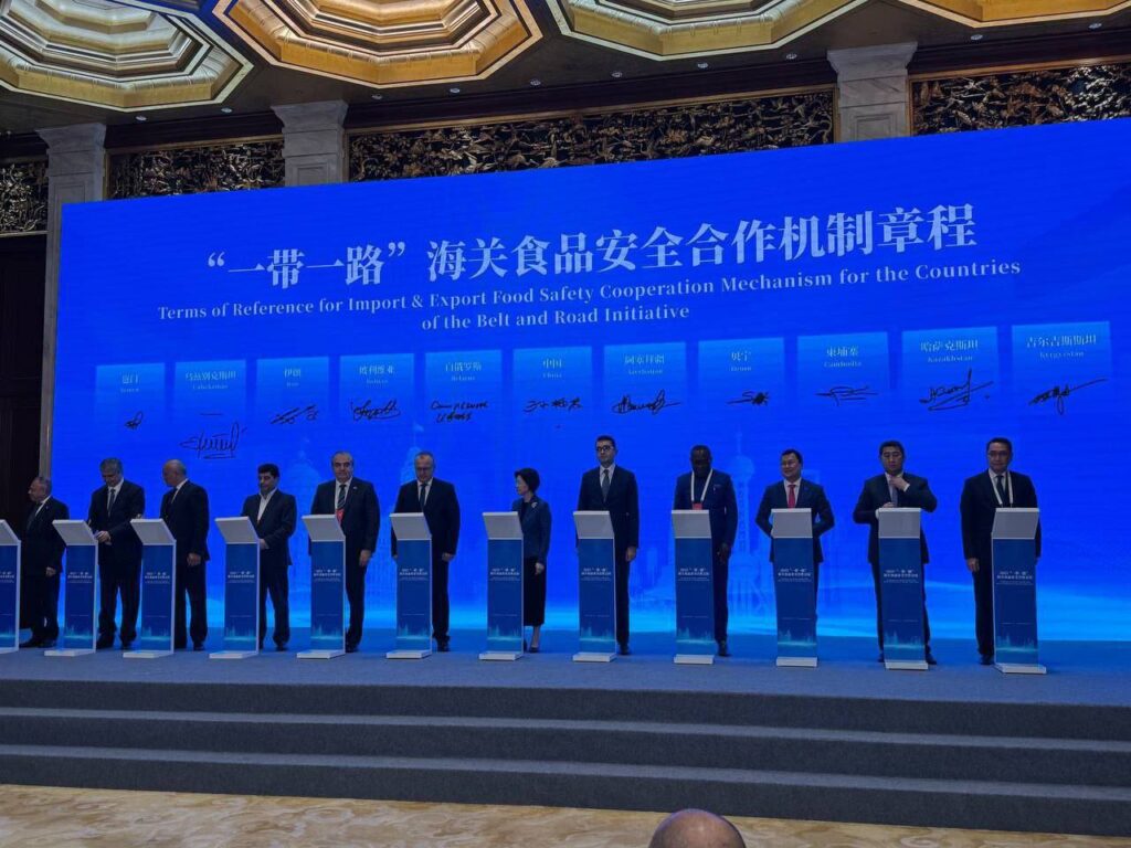 សូមជម្រាបថា យន្តការសហប្រតិបត្តិការសម្រាប់ការនាំចេញ និងនាំចូលចំណីអាហារ ដែលមានសុវត្ថិភាពសម្រាប់ប្រទេសជាសមាជិកនៃក្របខ័ណ្ឌគំនិតផ្ដួចផ្ដើមខ្សែក្រវាត់ និងផ្លូវ មានការចូលរួមពីរដ្ឋមន្ត្រីទទួលបន្ទុកសុវត្ថិភាពចំណីអាហារនៃបណ្ដាប្រទេសជាសមាជិកក្រោមការសម្របសម្រួលរបស់អគ្គរដ្ឋបាលគយ នៃសាធារណរដ្ឋប្រជាមានិតចិន (GACC) ហើយមានគោលដៅជំរុញការបើកទីផ្សារកសិផល ដែលមានសុវត្ថិភាពទៅ បណ្ដាប្រទេសទាំងនោះឱ្យកាន់តែទូលំទូលាយ ស្របតាមស្តង់ដារអន្តរជាតិ៕