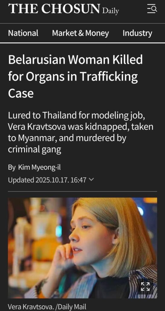 នាង Vera Krantsova មកពីប្រទេសបេឡារុស បានទទួលការផ្តល់ជូនការងារជា “ម៉ូដែល” តាមរយៈអ៊ីនធឺណិត ហើយបានធ្វើដំណើរទៅកាន់ទីក្រុងបាងកក ប្រទេសថៃ សម្រាប់កិច្ចសន្យាម៉ូដែល។