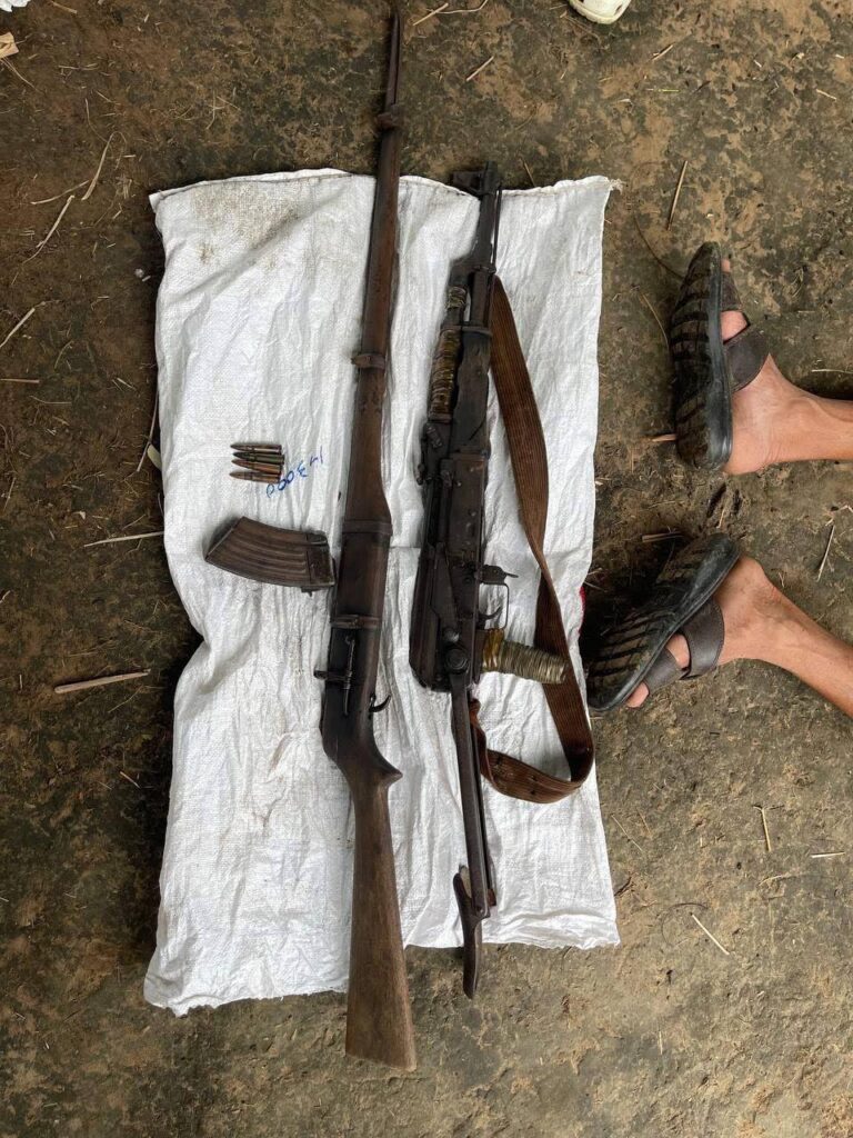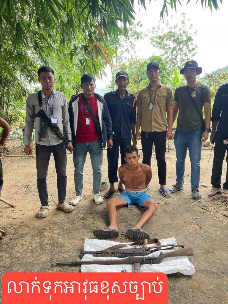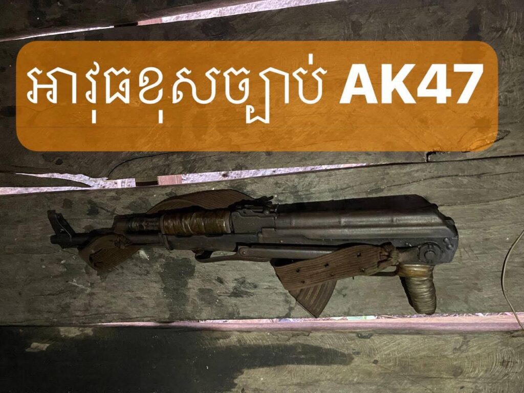 ក្នុងនោះ សមត្ថកិច្ចបានរកឃើញវត្ថុតាងជាអាវុធចំនួន ២ ដើម រួមមាន៖អាវុធប្រភេទ AK ស្វាយបត់ មួយដើម (លេខ ០៧៧៦៧) មានគុណភាពប្រហែល ៧០%អាវុធប្រភេទ កែឆ្នៃ មួយដើមបង់អាវុធចំនួន១ និងគ្រាប់អាវុធប្រភេទ AK47 ចំនួន៤គ្រាប់។