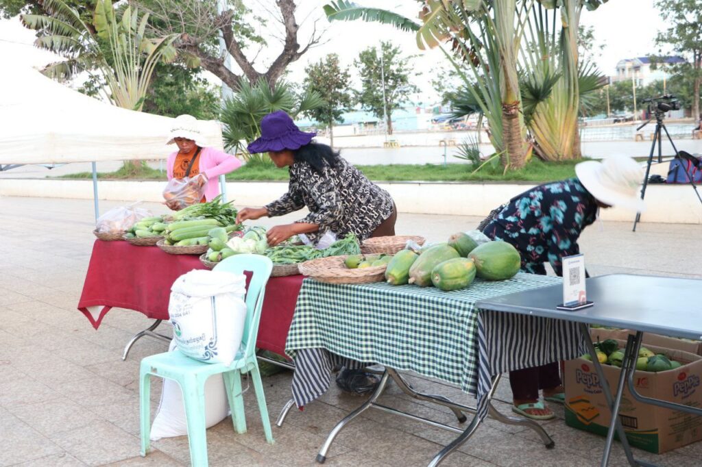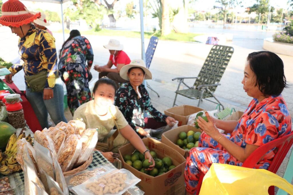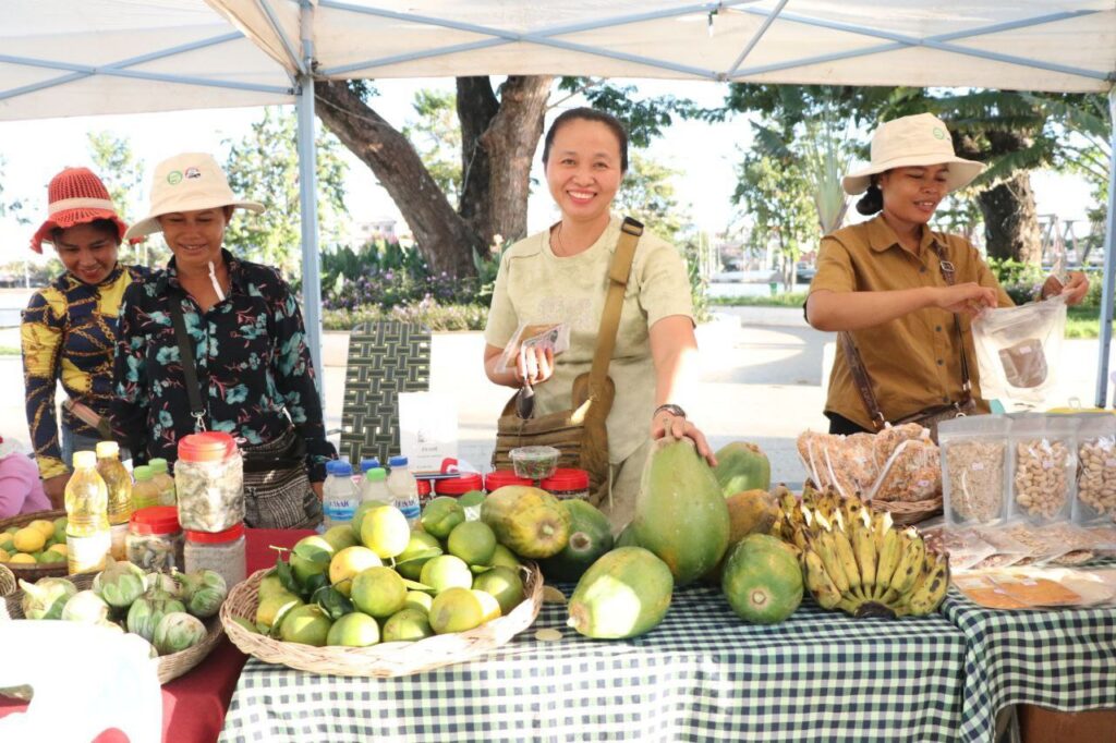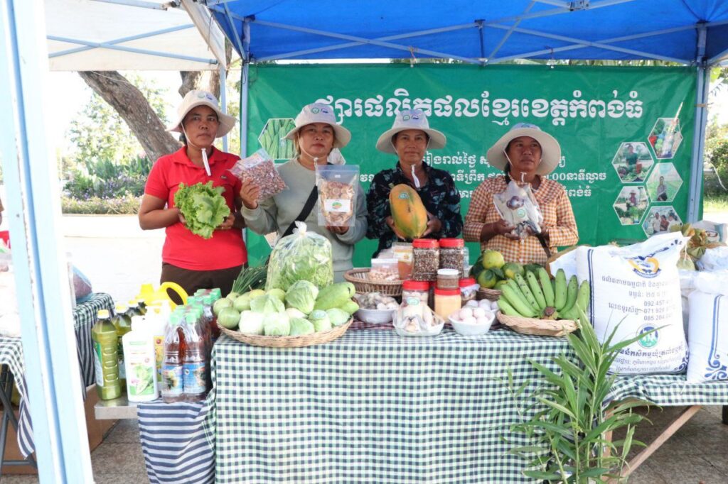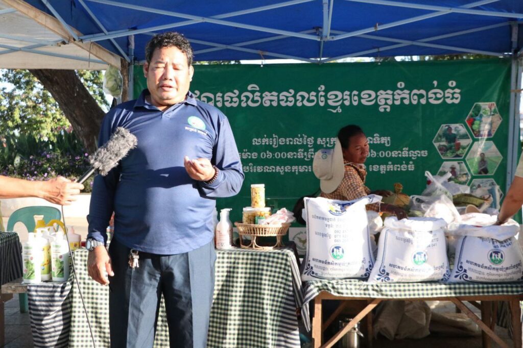 ក្រោមការដឹកនាំ និងការគាំទ្ររបស់ក្រសួងពាណិជ្ជកម្ម និងការសម្របសម្រួលផ្តល់ទីតាំងរបស់រដ្ឋបាលខេត្ត មន្ទីរពាណិជ្ជកម្មខេត្តកំពង់ធំ ក្រោមគម្រោងជំរុញទីផ្សារសម្រាប់កសិកម្មខ្នាតតូច (AIMS) នៃក្រសួងពាណិជ្ជកម្ម បានរៀបចំផលិតផលខ្មែរ ដាំដុះដោយកូនខ្មែរ កែច្នៃដោយកូនខែ្មរ ផលិតដោយកូនខ្មែរ បាននិងកំពុងដាក់លក់ ក្នុងស្តង់ផ្សារកសិផលខេត្តកំពង់ធំផ្សារផលិតផលខ្មែរនេះ មានគោលបំណងផ្ដល់ឱកាសទីផ្សារបន្ថែមដល់កសិករ ផលិតករអាជីវករខ្នាតតូច ជាតំណាងពីក្រុមកសិករផលិត និងជាការតភ្ជាប់ទំនាក់ទំនងទីផ្សារឱ្យកាន់តែប្រសើរ ដល់ក្រុមផលិតដែលអាចរកប្រាក់ចំណូល និងលើកកម្ពស់ជីវភាពរស់នៅពួកគេ។