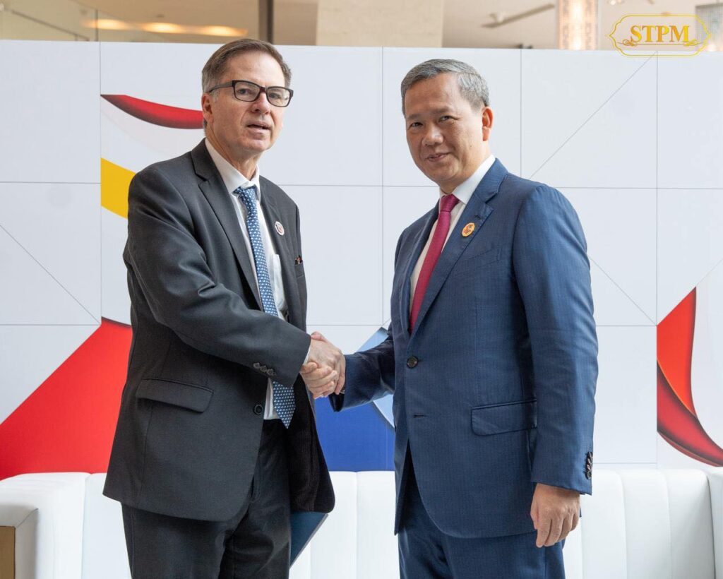 នាព្រឹកថ្ងៃទី២៦ ខែតុលា ឆ្នាំ២០២៥ សម្តេចមហាបវរធិបតី ហ៊ុន ម៉ាណែត នាយករដ្ឋមន្រ្តី នៃព្រះរាជាណាចក្រកម្ពុជា អនុញ្ញាតឱ្យលោកបណ្ឌិត Carlos Felipe Jaramillo អនុប្រធានធនាគារពិភពលោក ទទួលបន្ទុកតំបន់អាស៊ីបូព៌ា និងប៉ាស៊ីហ្វិក ក្នុងជំនួបសម្តែងការគួរសម និងពិភាក្សាការងារ ក្នុងឱកាសចូលរួមកិច្ចប្រជុំ កំពូលអាស៊ាន លើកទី៤៧ និងកិច្ចប្រជុំកំពូលពាក់ព័ន្ធ នៅទីក្រុងគូឡាឡាំពួ ប្រទេសម៉ាឡេស៊ី ពីថ្ងៃទី២៦-២៨ ខែតុលា ឆ្នាំ២០២៥។