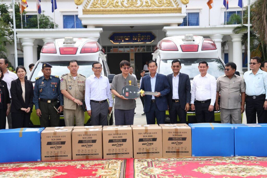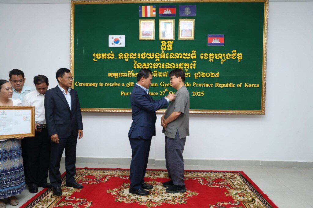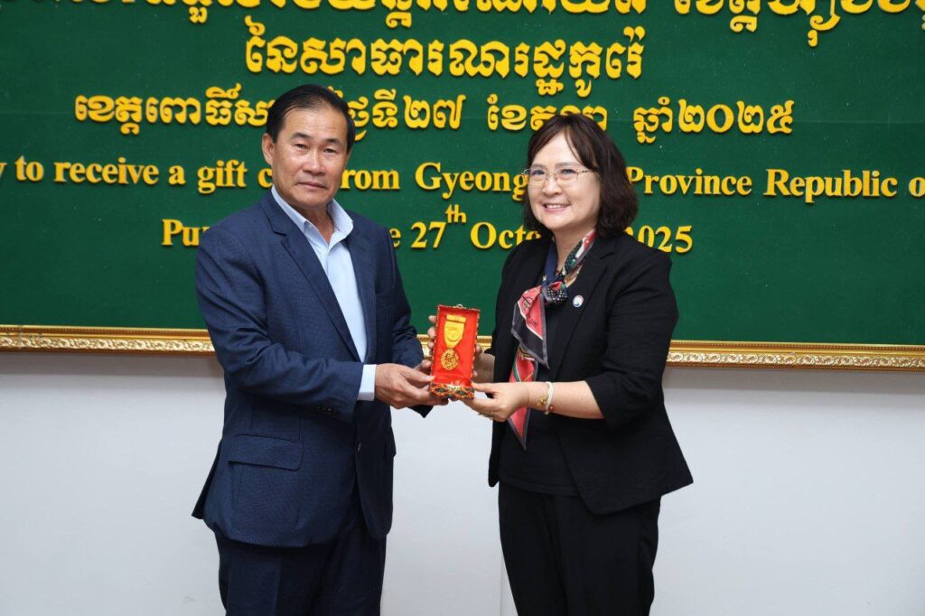 ពោធិ៍សាត់៖ ឯកឧត្តម ខូយ រីដា អភិបាលនៃគណៈអភិបាលខេត្តពោធិ៍សាត់ នារសៀលថ្ងៃទី២៧ ខែតុលា ឆ្នាំ២០២៥ បានទទួលស្វាគមន៍ ដំណើរទស្សនកិច្ច របស់លោក Park Woohee ប្រធានគណៈប្រតិភូ នៃសាធារណរដ្ឋកូរ៉េ តំណាងឯកឧត្តមអភិបាលខេត្ត Gyeonggi-do នៃសាធារណរដ្ឋកូរ៉េ ដែលបាននាំយក នូវរថយន្តពេទ្យ ចំនួន០២គ្រឿង និងរថយន្តពន្លត់អគ្គិភ័យ ចំនួន០១គ្រឿង ដែលជាអំណោយដ៏ថ្លៃថ្លារបស់រដ្ឋបាលខេត្ត Gyeonggi-do សម្រាប់ផ្តល់ជូនរដ្ឋបាលខេត្តពោធិ៍សាត់។