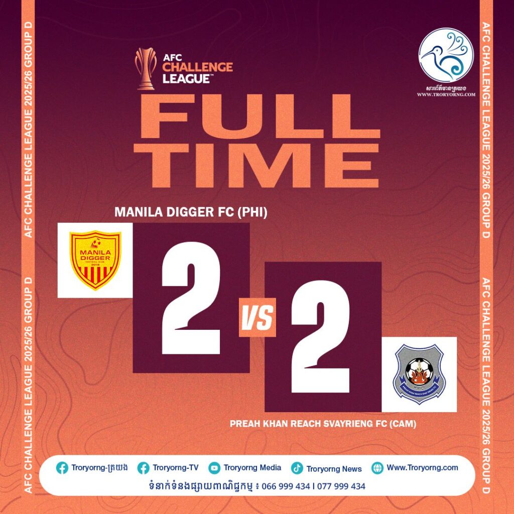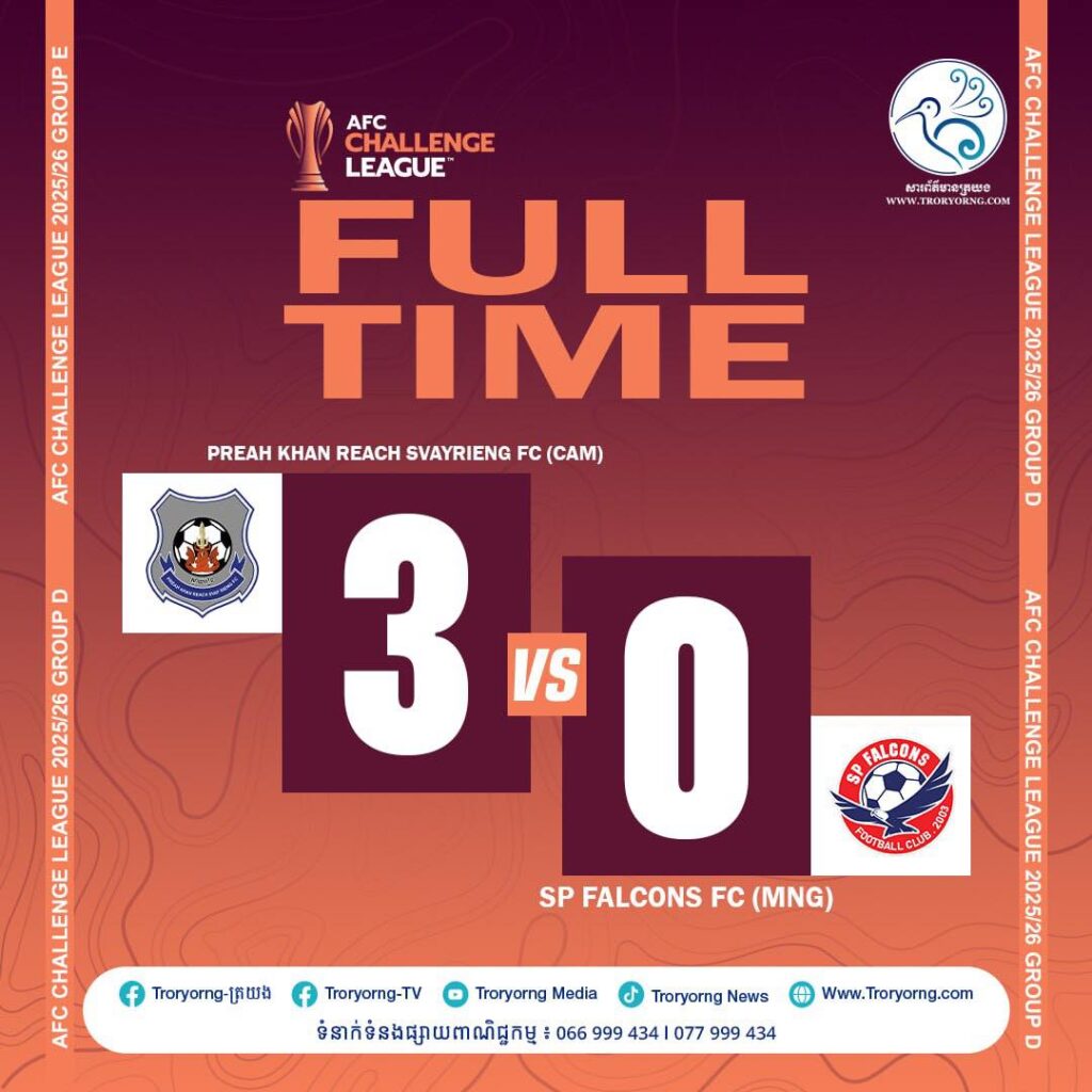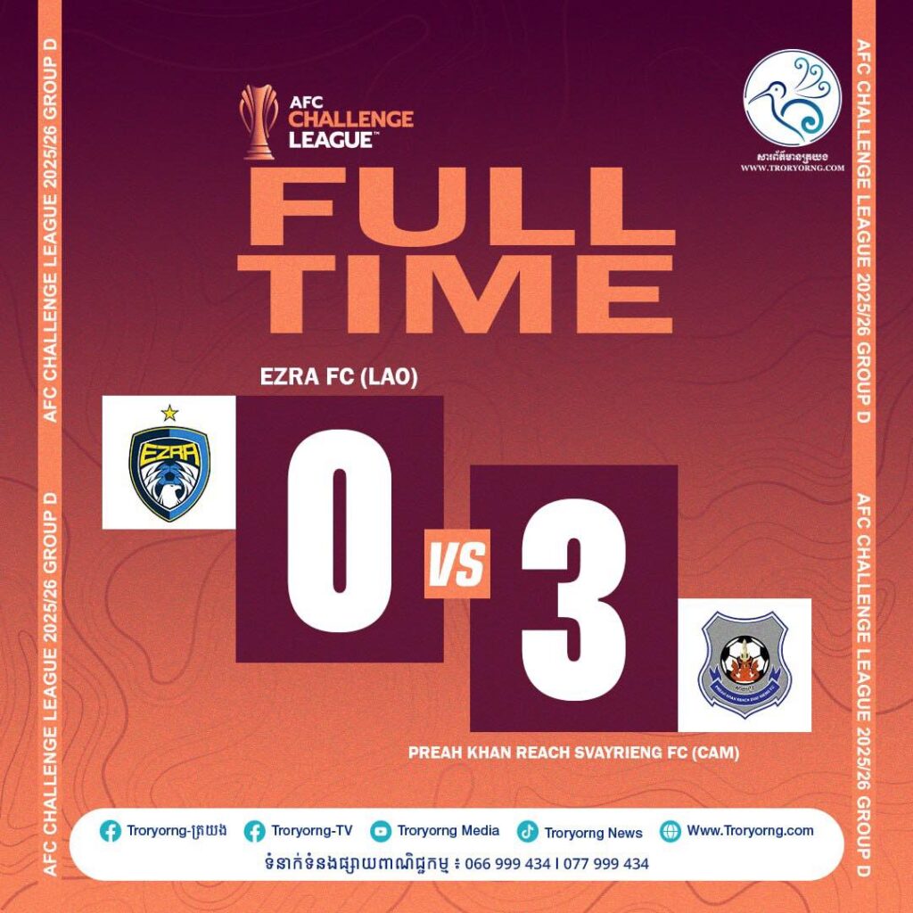 លទ្ធផលក្លិបតំណាងកម្ពុជា ព្រះខ័នរាជស្វាយរៀង ក្នុងពានរង្វាន់ AFC Challenge League 2025-26៖