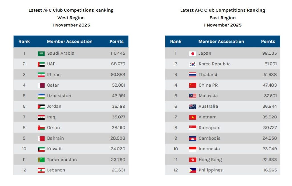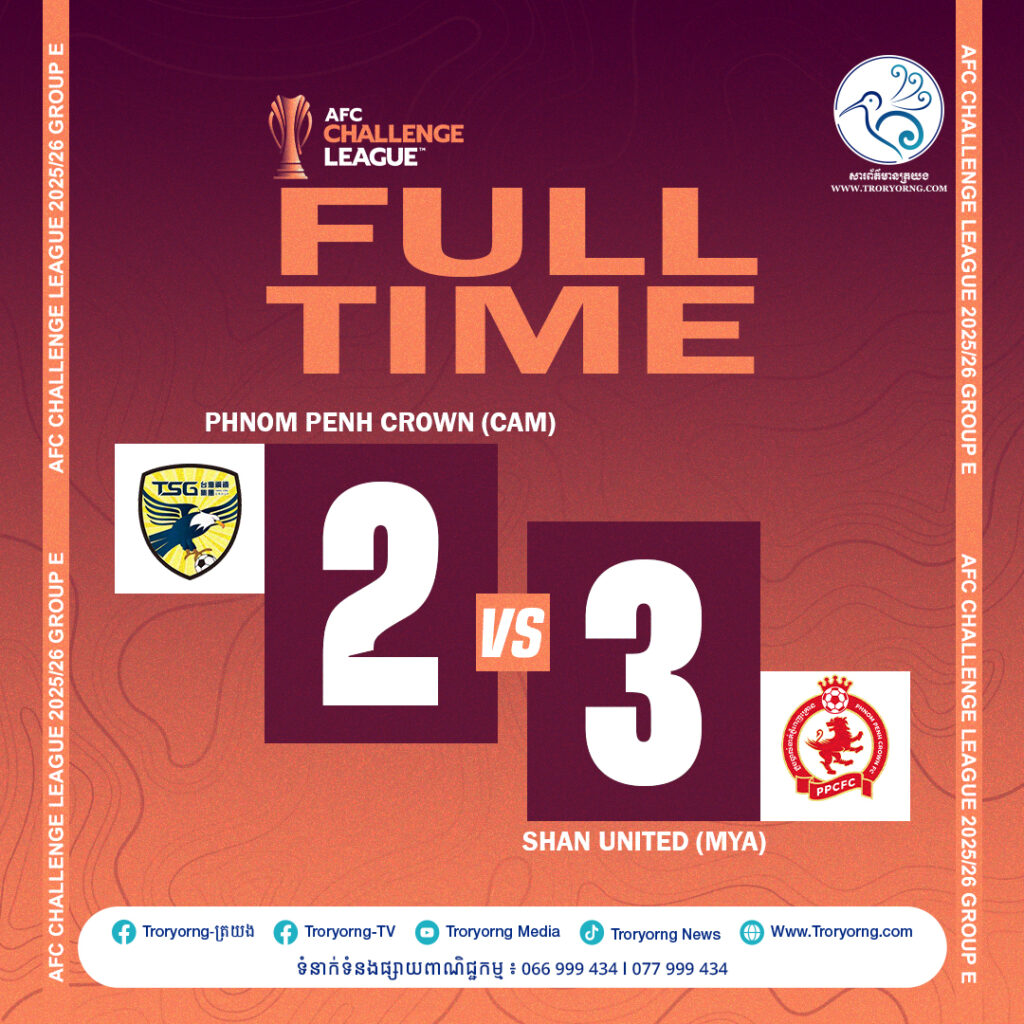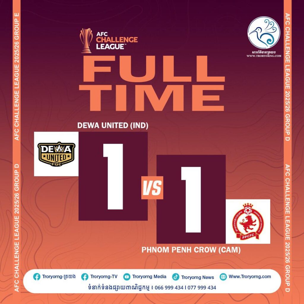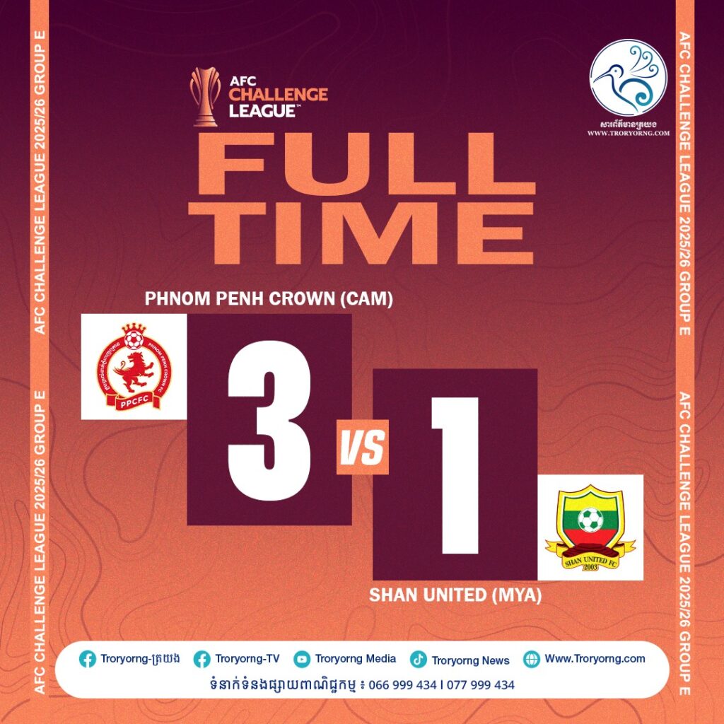 ក្លិបកម្ពុជា ឡើងឈរលេខ៩ នៅលើឥណ្ឌូណេស៊ី ក្នុងតារាងចំណាត់ថ្នាក់ AFC Club Competitions Ranking 2025-26 ក្រោយភ្នំពេញក្រោន រកបានជ័យជម្នះ និងព្រះខ័នរាជស្វាយរៀង ស្មើជាមួយ Manila Digger FC របស់ហ្វីលីពីន ក្នុងពានរង្វាន់ AFC Challenge League កាលពីថ្ងៃទី១ ខែវិច្ឆិកា ឆ្នាំ២០២៥។