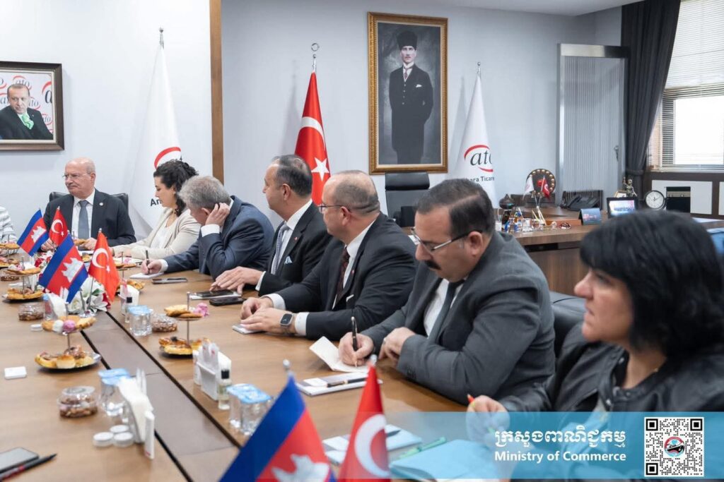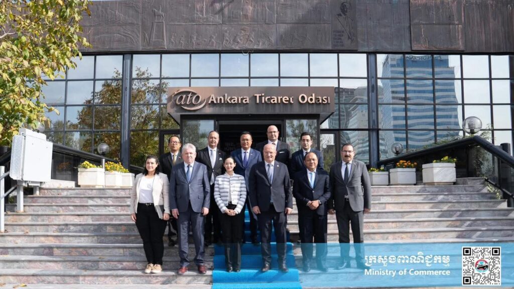 ទីក្រុងអង់ការ៉ា៖ កាលពីថ្ងៃទី៣ ខែវិចិ្ឆកា ឆ្នាំ២០២៥ លោកជំទាវ ចម និម្មល រដ្ឋមន្ត្រីក្រសួងពាណិជ្ជកម្មកម្ពុជា បានដឹកនាំគណៈប្រតិភូទៅបំពេញទស្សនកិច្ចជាប្រវត្តិសាស្ត្រនៅសភាពាណិជ្ជកម្មអង់ការ៉ា (Ankara Chamber of Commerce) ក្នុងប្រទេសតួកគីយ៉េ ដើម្បីជួបពិភាក្សាការងារជាមួយលោក Gürsel BARAN ប្រធានសភាពាណិជ្ជកម្ម និងសហការី។