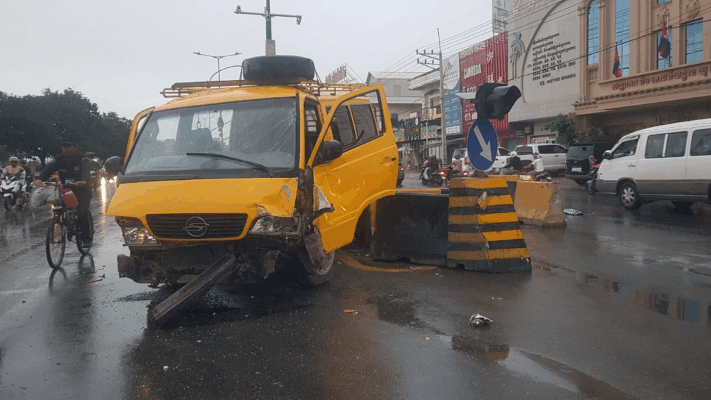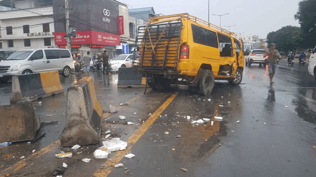 ភ្នំពេញ ៖ រថយន្តសាំយ៉ុងមួយគ្រឿង កែច្នែលើសពីលក្ខណៈបច្ចេកទេស កង់ឌុប តកន្ទុយ ដឹកគ្រឿងសមុទ្រ បើកលឿនគេចពីម៉ូតូ ជ្រុលទៅបុកទ្រូងផ្លូវ ប៉ើងខ្ទាត៦កង់ រថយន្តខ្ទេចមួយចំហៀង កាលពីវេលាម៉ោង៤និង៥៥នាទីព្រឹក ថ្ងៃទី០៧ ខែវិច្ឆិកា ឆ្នាំ២០២៥ នៅផ្លូវសហព័ន្ធរុស្សុី ចំណុចភ្លើងស្តុប ភូមិព្រៃទា១ សង្កាត់ចោមចៅទី៣ ខណ្ឌពោធិ៍សែនជ័យ រាជធានីភ្នំពេញ។