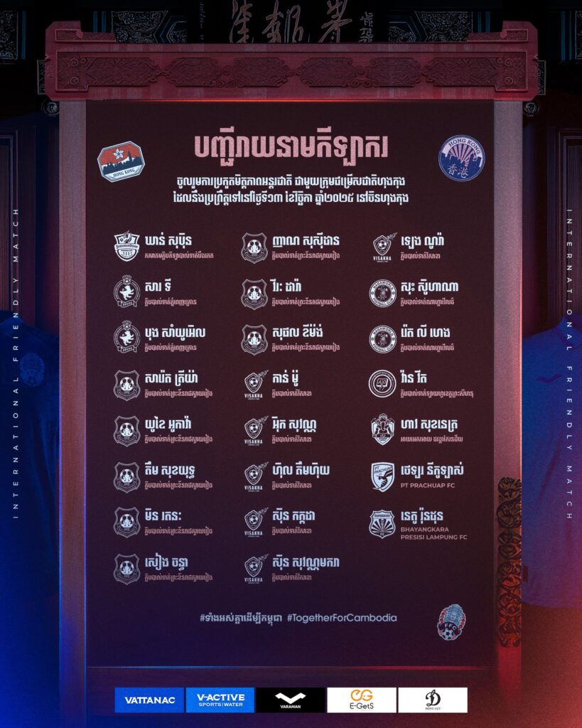 - កម្ពុជា ប្រកួតមិត្តភាពជាមួយ ហុងកុង នៅថ្ងៃទី១៣ វិច្ឆិកា ២០២៥