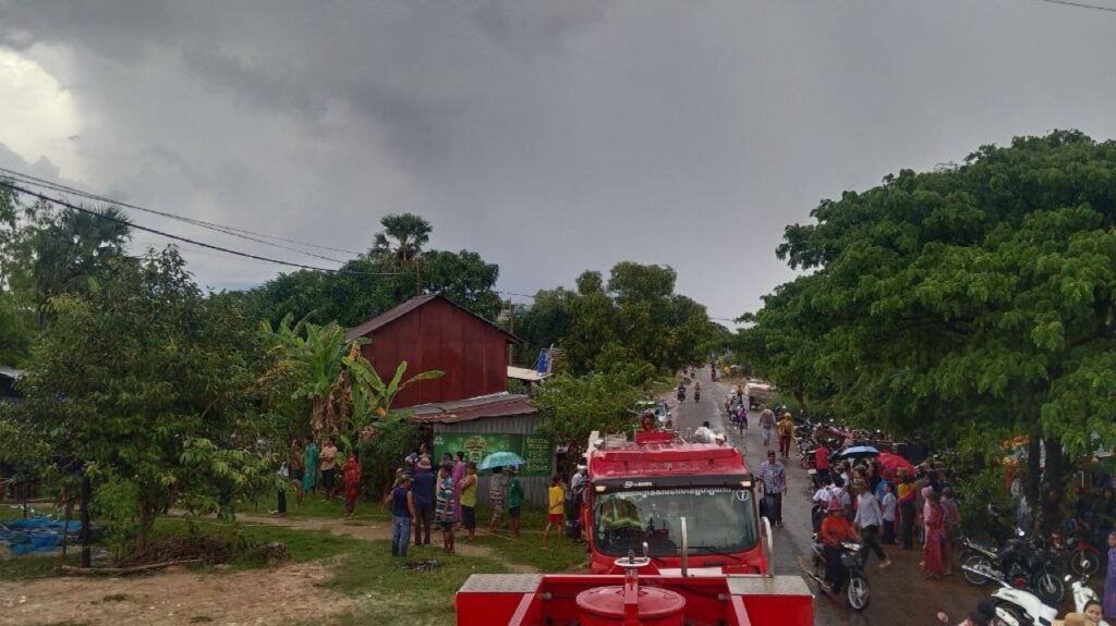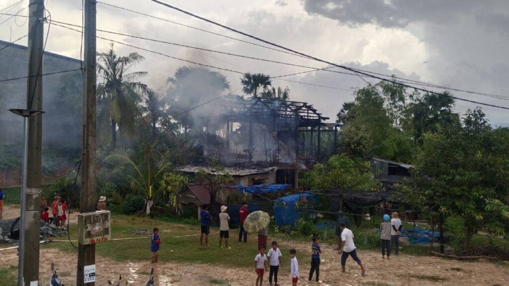 សៀមរាប ៖ ផ្ទះឈើមួយខ្នងត្រូវបានអគ្គិភ័យឆាបឆេះអស់ទាំងស្រុង ខណៈដែលមេឃកំពុងធ្លាក់ភ្លៀង កាលពីវេលាម៉ោង១២ថ្ងៃត្រង់ឬី១១ ខែវិច្ឆិកា ឆ្នាំ២០២៥ នៅក្នុងភូមិខ្នារ សង្កាត់ក្របីរៀល ក្រុងសៀមរាប ខេត្តសៀមរាប ។