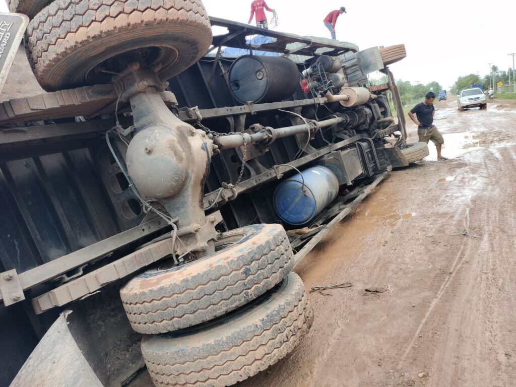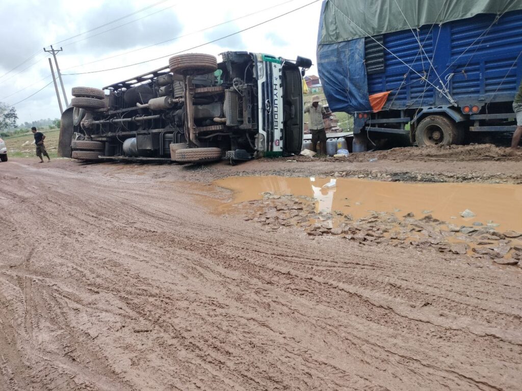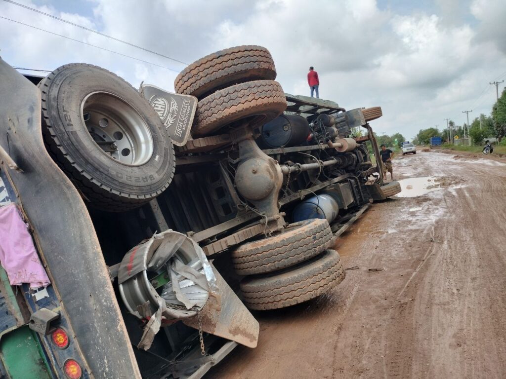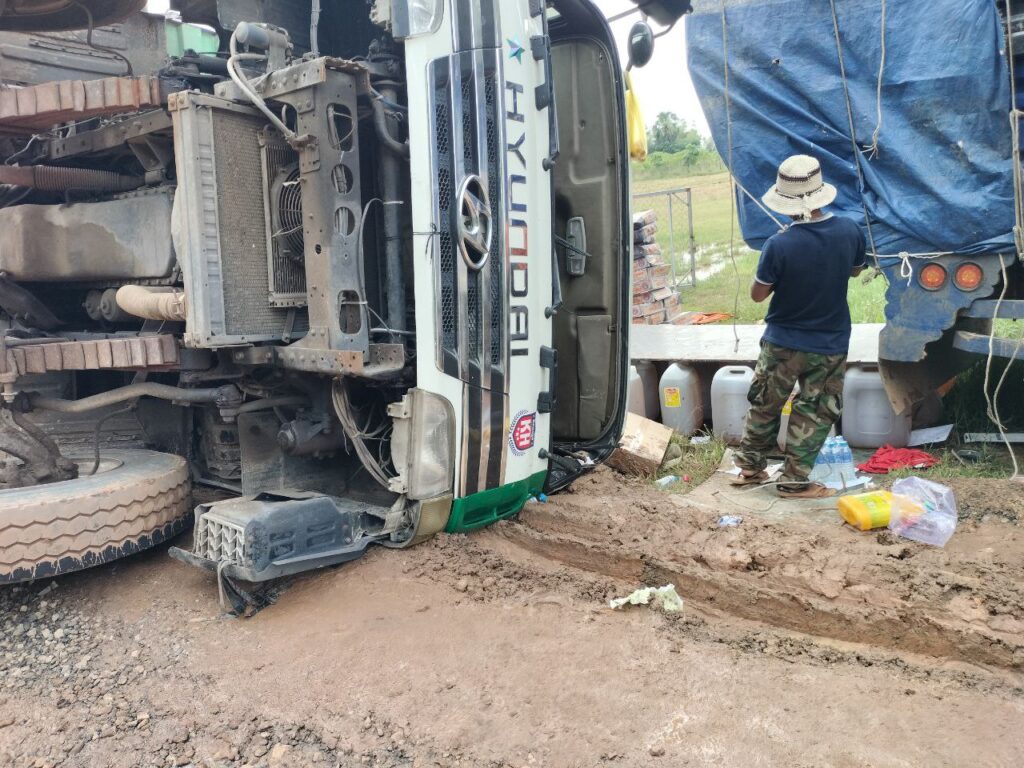 តាមប្រជាពលរដ្ឋបានឱ្យដឹងថា រថយន្តដឹកទំនិញ មកពីប្រទេសវៀតណាម រាល់ថ្ងៃទៅហើយ ការដឹកជញ្ជូនទំនិញ ដាក់ ដឹកហួសហេតុ សំពីងសំពោង ម្យ៉ាងបើកឆ្លងកាត់ស្ថានភាពផ្លូវទឹក ជង្ហុកទៀត ប្រឈមគ្រោះថ្នាក់ ក្រឡាប់រថយន្ត ដូចរថយន្តមួយគ្រឿងខាងលើ ម៉ាកហុីយ៉ាន់ដាយ ពណ៌ស ដឹកមី និងប្រេងឆា មកពីប្រទេសវៀតណាម ដឹកហួសពីទ្រុងរថយន្តទៅទៀត ខណៈដែលបើកដល់ចំណុចខាងលើ ស្ថានភាពផ្លូវជង្ហុក បណ្តាលឱ្យក្រឡាប់បះជើងខ្លួនឯង សំណាងមិនបង្កគ្រោះថ្នាក់ដល់មនុស្ស ។