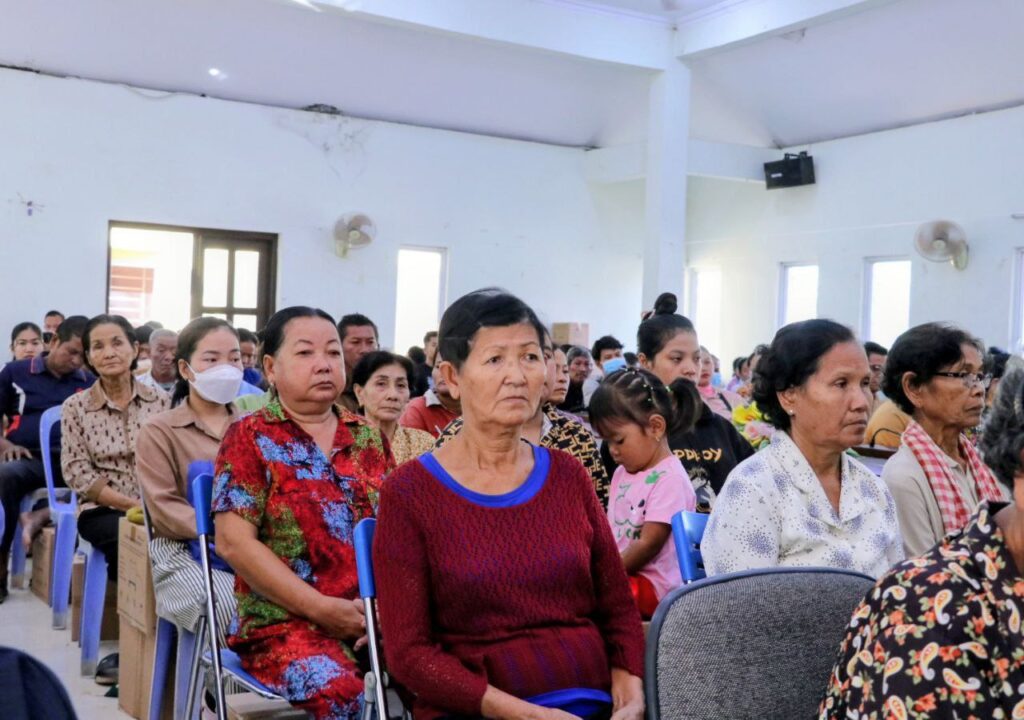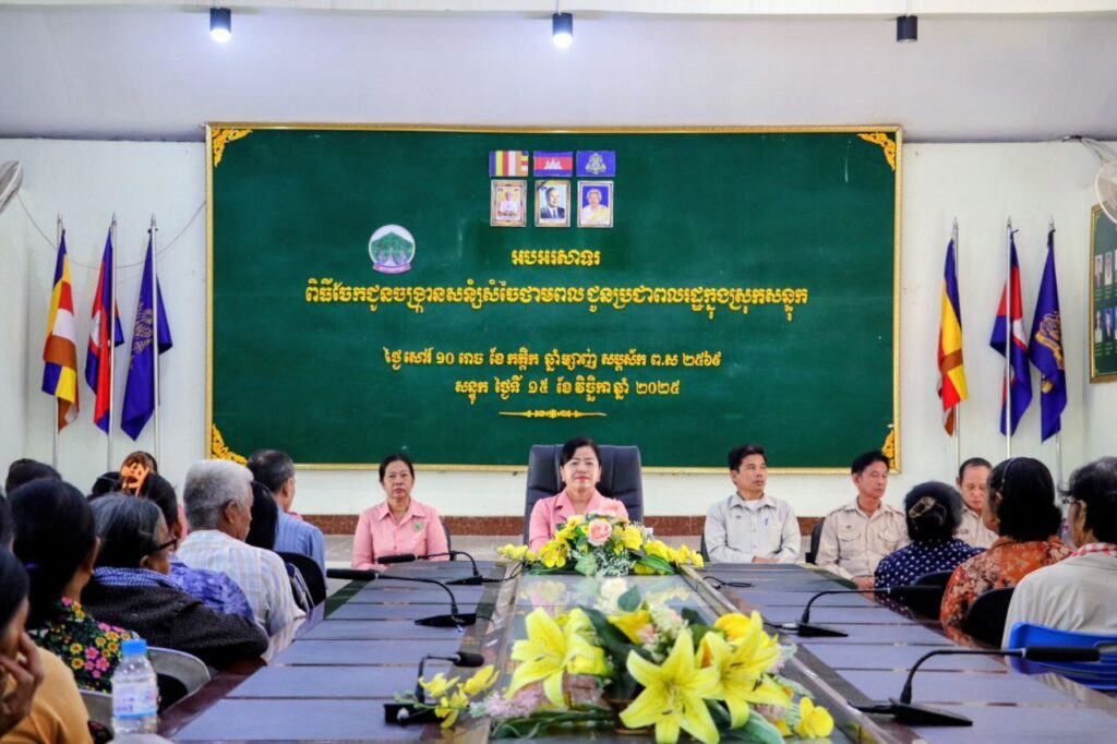 កំពង់ធំ៖ លោកជំទាវ ឃួន ឃុនឌី សមាជិកព្រឹទ្ធសភា និងជាអនុប្រធានកិត្តិយសសាខាសមាគមនារីកម្ពុជាដើម្បីសន្តិភាព និងអភិវឌ្ឍន៍ខេត្តកំពង់ធំ បានចែកចង្ក្រានសន្សំ