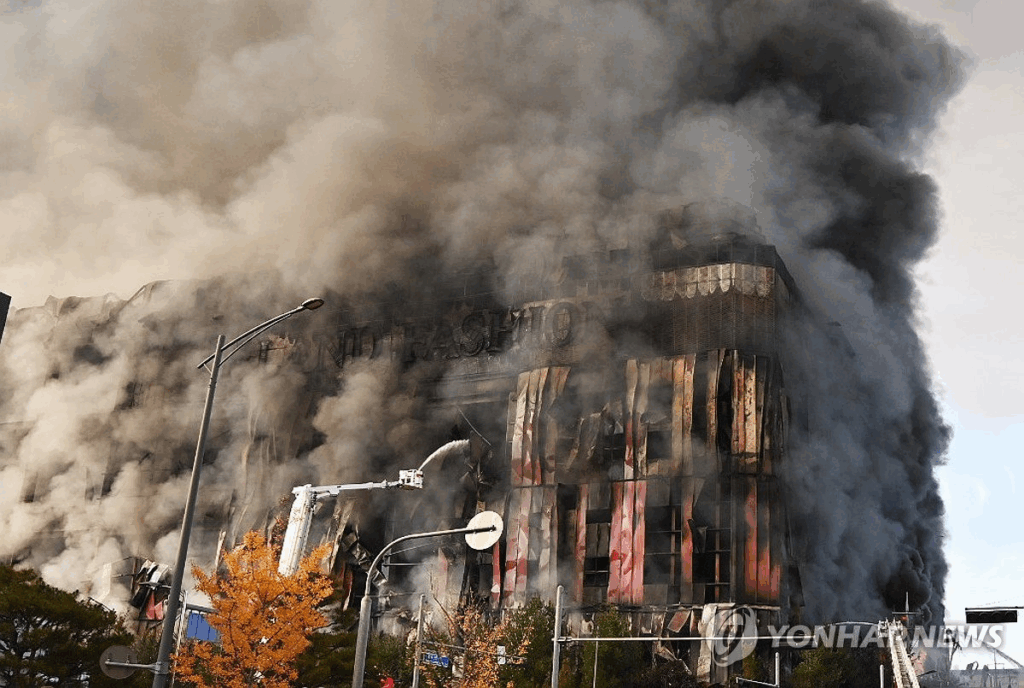 យោងតាមទីបញ្ជាការកងពន្លត់អគ្គិភ័យខេត្ត Chungcheong ភាគខាងត្បូង អគ្គិភ័យបានឆាបឆេះនៅម៉ោងប្រហែល ៦:០៨ នាទីព្រឹក មុនពេលបុគ្គលិកចូលធ្វើការ។ ភ្លើងបានចាប់ផ្តើមឆេះនៅ ជាន់ទី ៤ នៃឃ្លាំងស្តុកទំនិញ ហើយបានរាលដាលយ៉ាងលឿន ដោយសារមាន ទំនិញសម្លៀកបំពាក់ និងស្បែកជើងយ៉ាងច្រើនសន្ធឹកសន្ធាប់ ជាប្រភពឥន្ធនៈ។ ឃ្លាំងនេះមានទំហំជាង ១៩៣.០០០ ម៉ែត្រការ៉េ ហើយបានស្តុកទុកទំនិញ ជាង ១១ លានមុខ។