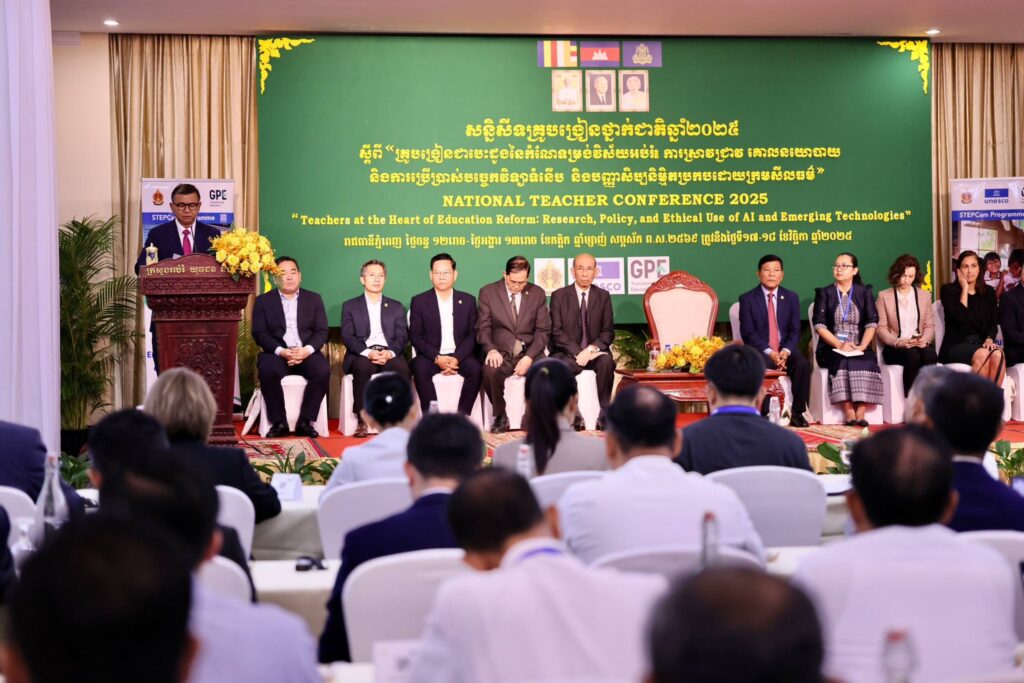 ភ្នំពេញ ៖ ពិធីបើកសន្និសីទគ្រូបង្រៀនថ្នាក់ជាតិឆ្នាំ២០២៥ ត្រូវបានប្រារព្ធធ្វើឡើងក្រោមអធិបតីភាពដ៏ខ្ពង់ខ្ពស់របស់ ឯកឧត្តម ហង់ជួន ណារ៉ុន រដ្ឋមន្ត្រីក្រសួងអប់រំ យុវជននិងកីឡា ក្រោមប្រធានបទ «គ្រូបង្រៀនជាបេះដូងនៃកំណែទម្រង់វិស័យអប់រំ៖ ការស្រាវជ្រាវ គោលនយោបាយ និងការអនុវត្តសម្រាប់ការប្រើប្រាស់បច្ចេកវិទ្យាទំនើប និងបញ្ញាសិប្បនិម្មិតប្រកបដោយក្រមសីលធម៌»។
