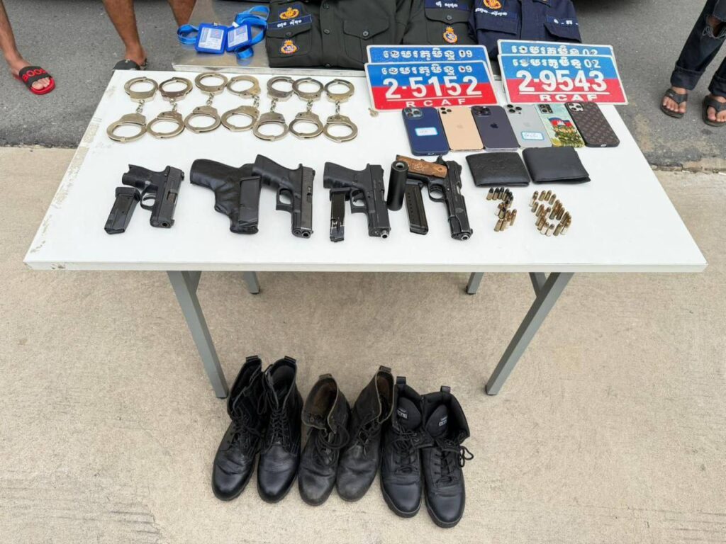 វត្ថុតាងដែលបានរឹបអូសរួមមាន៖ រថយន្ត ២ គ្រឿង, កាំភ្លើងខ្លី ៤ ដើម, គ្រាប់កាំភ្លើង ៣៨ គ្រាប់, សម្លៀកបំពាក់កងរាជអាវុធហត្ថ ៤ កំប្លេ