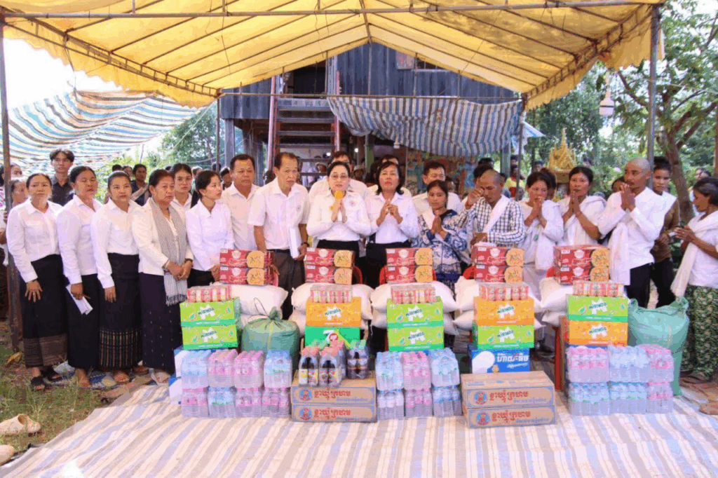 បើតាមរបាយការណ៍របស់ នាយកសាខាកាកបាទក្រហមសាខាខេត្តកំពង់ចាម បានឲ្យដឹងថា សម្ភារៈ ដែលបាន នាំយកមកចូលរួមបុណ្យសព រួមមាន៖ អង្ករ ៥០គក្រ, មី ២កេស, ត្រីខ ២០កំប៉ុង, ទឹកក្រូច ២កេស, ទឹកពិសា ២កេស និង ថវិកាចំនួន ៥០០,០០០រៀល ។ ដោយឡែក៖ អនុសាខាស្រុក បានចូលបុណ្យ អង្ករ ១០០គក្រ និងគ្រឿងឧបភោគបរិភោគ មួយចំនួន។ព្រះមេគណ ព្រះអនុគណ និងព្រះមន្ត្រីសង្ឃខេត្ត ឧបត្ថម្ភក្នង ១គ្រូសារ សព ជា សម្ភារ: ( ប្រឡុង) ១ឈុត និងចូលបុណ្យ ២០០,០០០រៀល៕