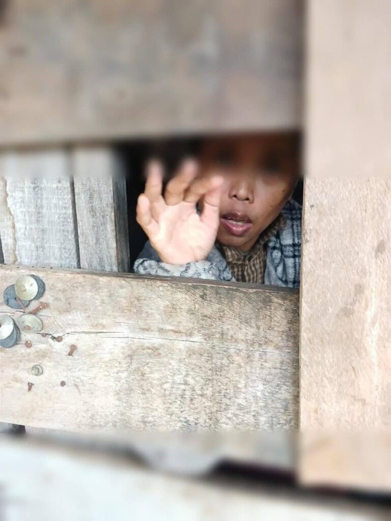 ក្នុងបេសកកម្មទៅខេត្តស្ទឹងត្រែង ក្រុមការងារយើងត្រូវបានគេផ្ដល់ព័ត៌មានអំពីស្ត្រីម្នាក់ មានជំងឺផ្លូវចិត្តធ្ងន់ធ្ងរហើយត្រូវបានបង្ខាំងទុកចោលក្នុងខ្ទមដាច់តែឯង។ នៅពេលទៅដល់ នៅខាងក្រោមខ្ទមនោះពោរពេញដោយដបទឹកប្លាស្ទិក ប្រអប់ស្នោរ ថង់ប្លាស្ទិកនៅស្អេកស្កះ។ ពេលមើលតាមប្រហោងទ្វារ ឃើញនារីម្នាក់ អង្គុយនិយាយម្នាក់ឯង។