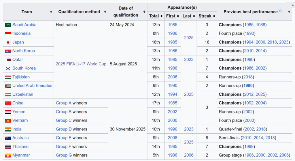 ស្របពេល ៧ប្រទេសកាន់កាប់កំពូលតារាងវគ្គជម្រុះ AFC U-17 Asian Cup qualification 2026 ទទួលបានកៅអីទៅប្រទេសអារ៉ាប៊ីសាអូឌីត៖