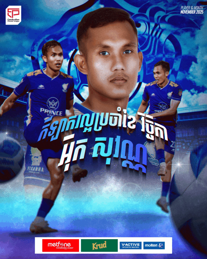 ពានរង្វាន់លីគកំពូលកម្ពុជា Cambodian Premier League រដូវកាលឆ្នាំ២០២៥-២៦ ដំណើរការបានជាង៤ខែហើយ ខណៈមានកីឡាករចំនួន៤រូបដណ្តើមបានពានកីឡាករល្អប្រចាំខែ គិតចាប់តាំងពីខែសីហា ឆ្នាំ២០២៥ ស្របពេលដែលកីឡាករ អ៊ុក សុវណ្ណ ខ្សែការពារឆ្នើមរបស់ក្លិបបាល់ទាត់វិសាខា ឈ្នះពានកីឡាករល្អប្រចាំខែវិច្ឆិកា នេះ។
