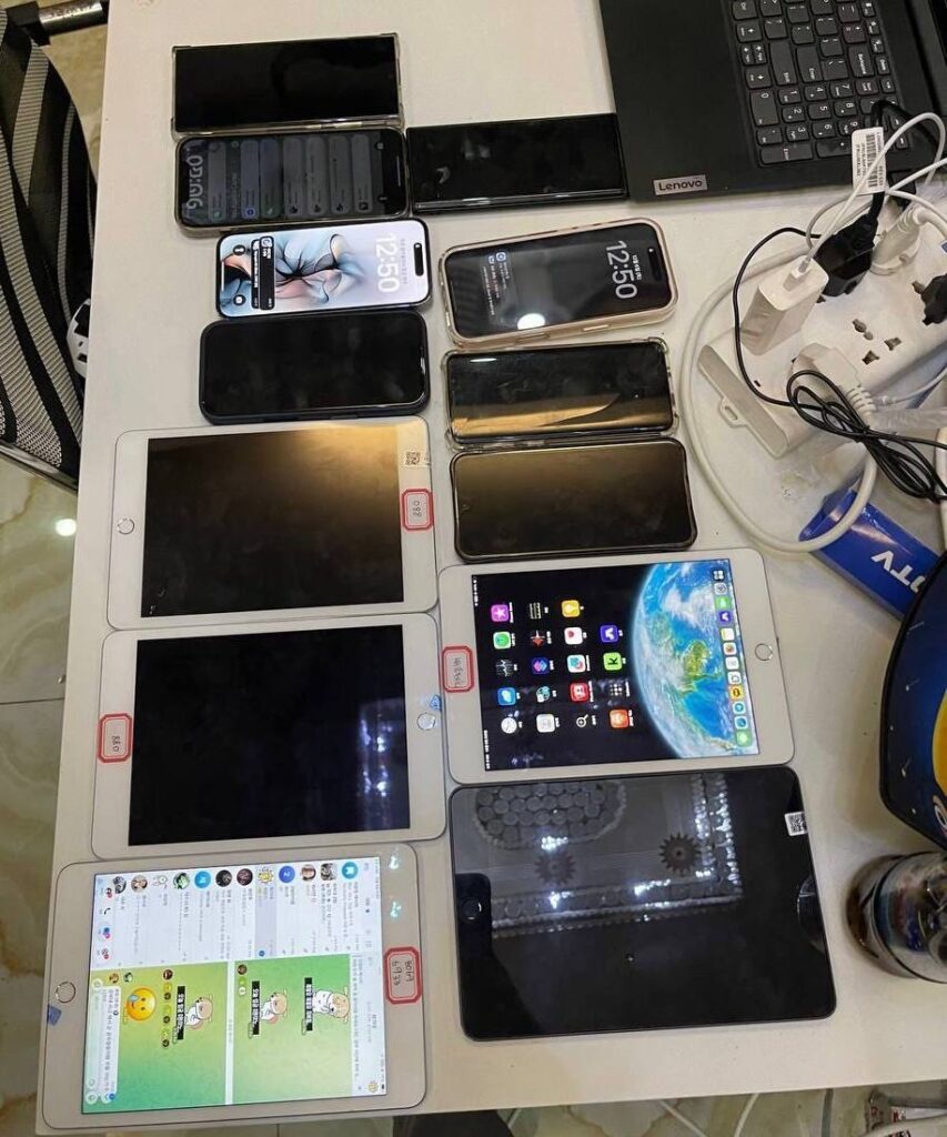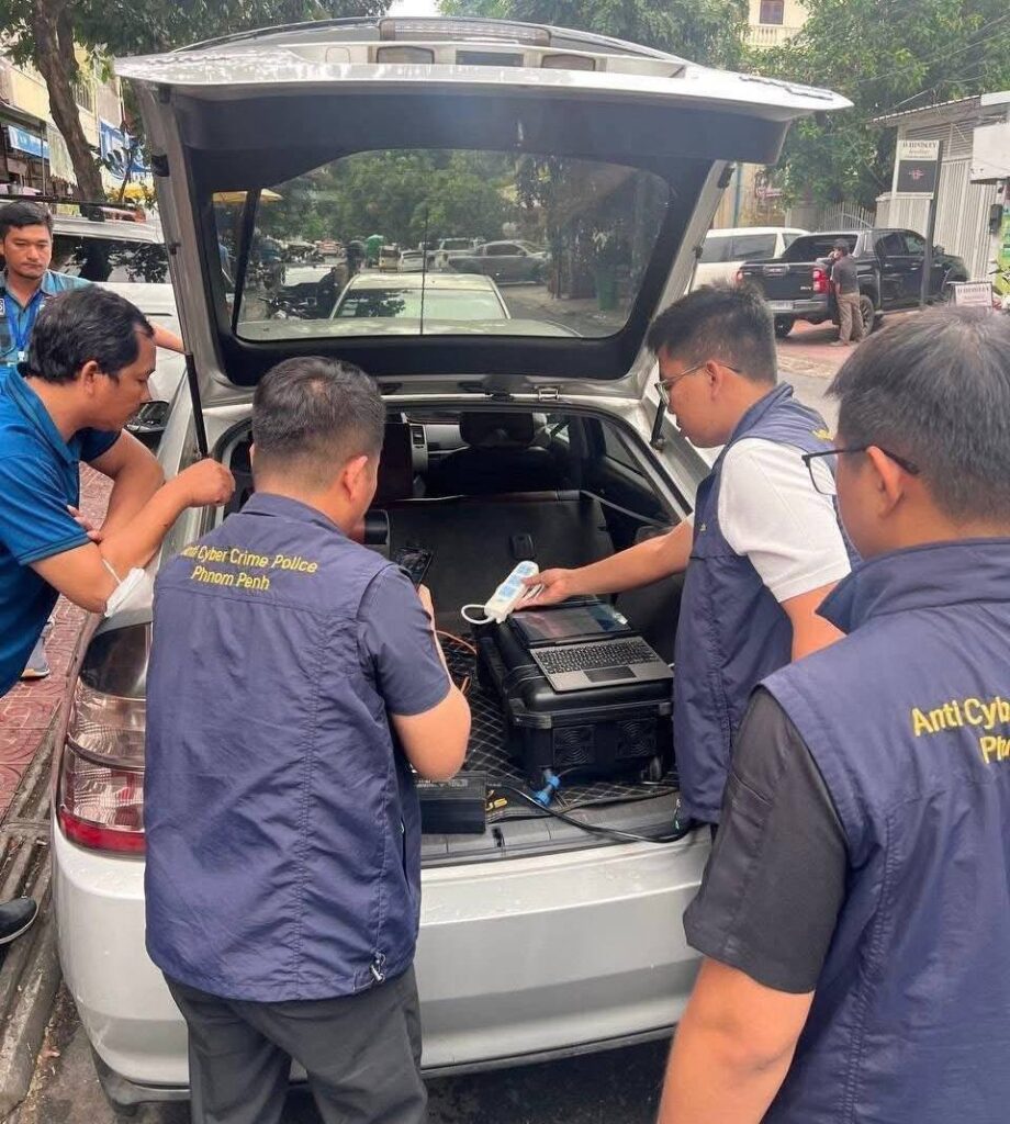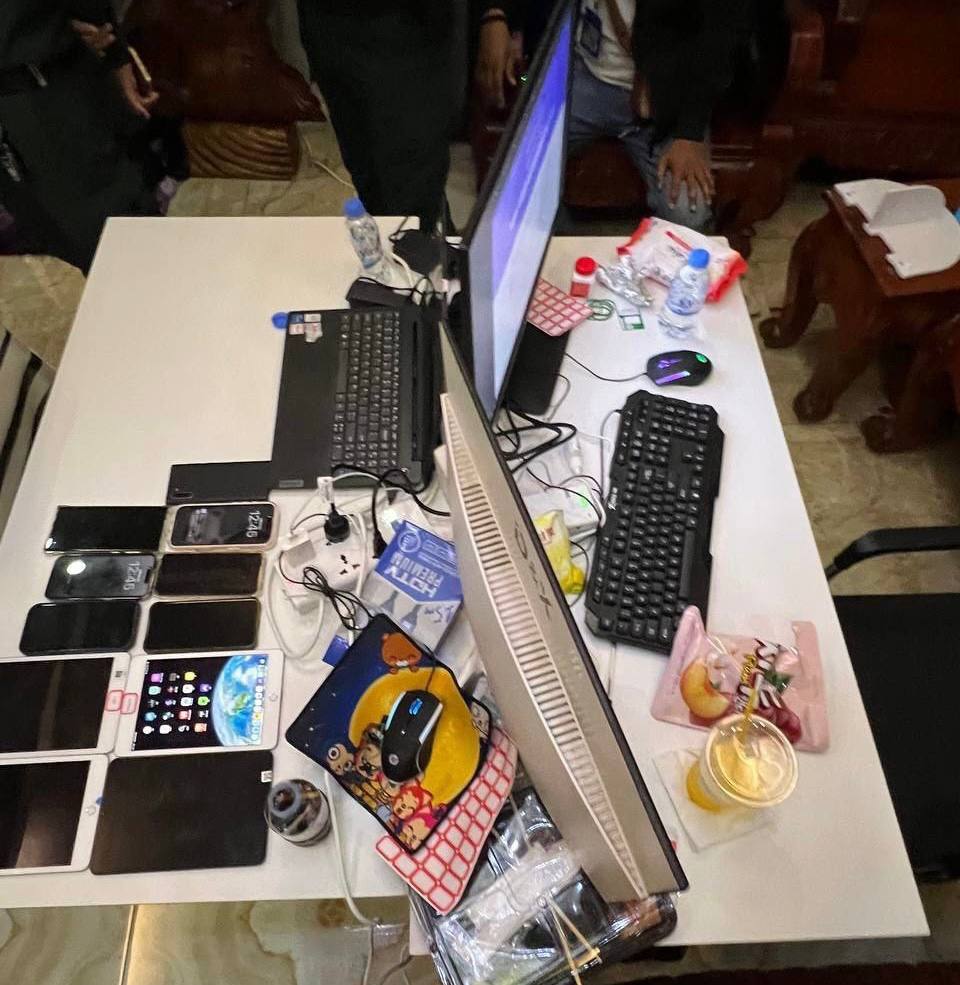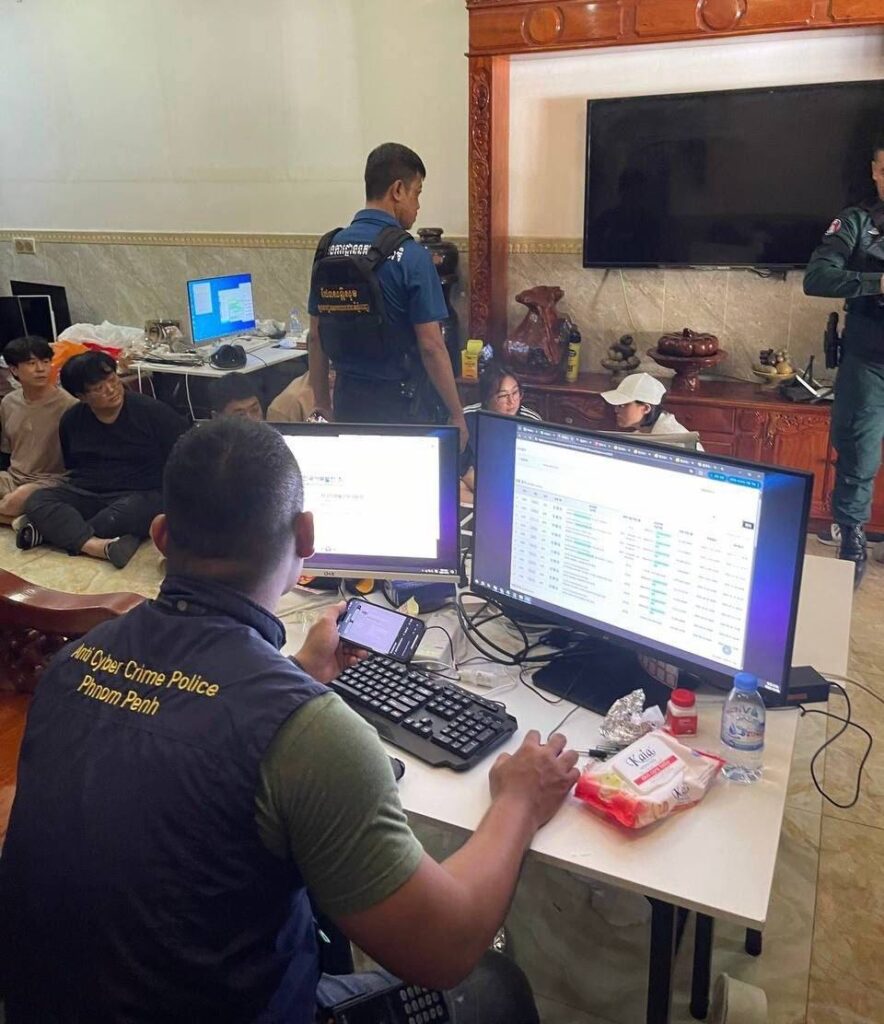 ជម្រាបដោយសង្ខេប នៅថ្ងៃទី៦ ខែធ្នូ ឆ្នាំ២០២៥ នេះ កម្លាំងចម្រុះនៃផែនការងារសន្តិសុខ ផែនការងារអន្តោប្រវេសន៍ និងអធិការដ្ឋាននគរបាលខណ្ឌឫស្សីកែវ ដោយមានការសម្របសម្រួលនីតិវិធីពីព្រះរាជអាជ្ញារង នៃអយ្យការអមសាលាដំបូងរាជធានីភ្នំពេញ បានចុះបង្ក្រាបទីតាំងសង្ស័យលួចលាក់បង្កប់បទល្មើសឆបោកតាមប្រព័ន្ធអនឡាញ (Online Scams) ក្នុងបុរីពិភពថ្មី ផ្លូវជាតិលេខ៥ ក្នុងខណ្ឌឫស្សីកែវ។ ក្នុងនោះ សមត្ថកិច្ច បានឃាត់ខ្លួនជនជាតិកូរ៉េ ចំនួន ៧នាក់ (ស្រី២នាក់) ជនជាតិខ្មែរ ចំនួន ២នាក់ (អ្នកបើកបររថយន្ត) និងដកហូតវត្ថុតាង រួមមាន៖ កុំព្យូទ័រយួរដៃ (Laptop) ចំនួន ៦គ្រឿង កុំព្យូទ័រ All in one ចំនួន ៤គ្រឿង ម៉ូនីទ័រ ចំនួន ៦គ្រឿង និង iPad ចំនួន ៨គ្រឿង។ បច្ចុប្បន្នសមត្ថកិច្ច កំពុងត្រួតពិនិត្យ និងធ្វើកោសល្យវិច័យបឋម ស្វែងរកបទល្មើសក្នុងឧបករណ៍ទាំងនោះ។