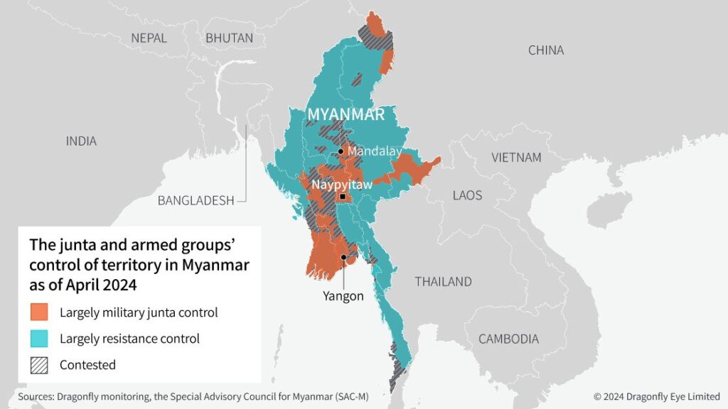 បើនិយាយពីការគ្រប់គ្រងលើទឹកដីក្នុងប្រទេសមីយ៉ាន់ម៉ាបច្ចុប្បន្ន កងទ័ពអារ៉ាកាន់ (AA) បានដណ្តើមបានទឹកដីយ៉ាងច្រើន ចាប់តាំងពីបទឈប់បាញ់បានដួលរលំនៅឆ្នាំ ២០២៣ ដោយបានរុញច្រានយោធាចេញពីទីប្រជុំជនភាគច្រើននៃរដ្ឋរ៉ាឃីន។ ទីក្រុង ម្រុកយូ ស្ថិតនៅក្រោមការគ្រប់គ្រងរបស់ កងទ័ពអារ៉ាកាន់ អស់រយៈពេលជាងមួយឆ្នាំមកហើយ ហើយ មិនមានការប៉ះទង្គិចគ្នា នៅក្នុងតំបន់នោះនាពេលថ្មីៗនេះទេ។ ការវាយប្រហារនេះ បានបង្កើនការព្រួយបារម្ភជាថ្មីអំពីយុទ្ធសាស្ត្រទ័ពនិង ការមិនគោរពចំពោះទីកន្លែងស៊ីវិល របស់ក្រុមយោធា៕