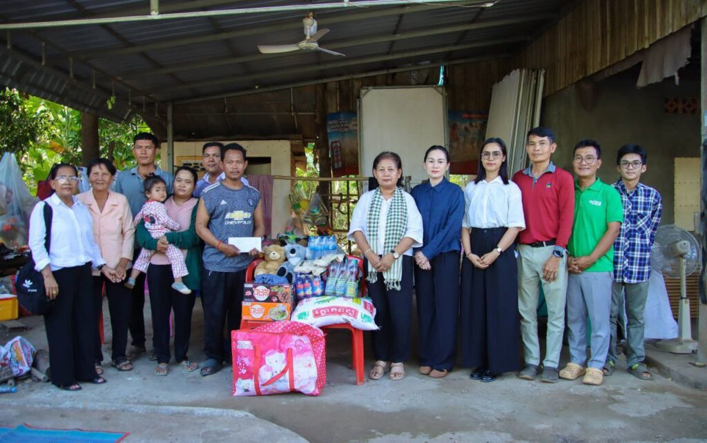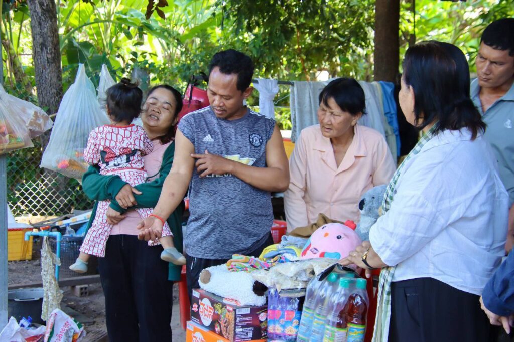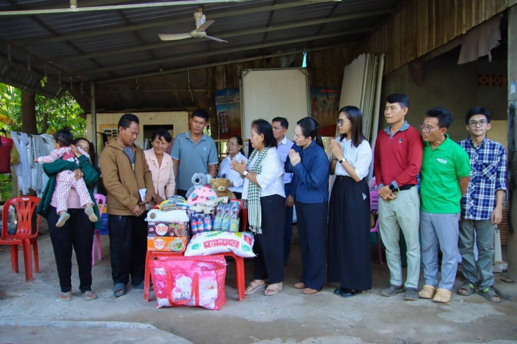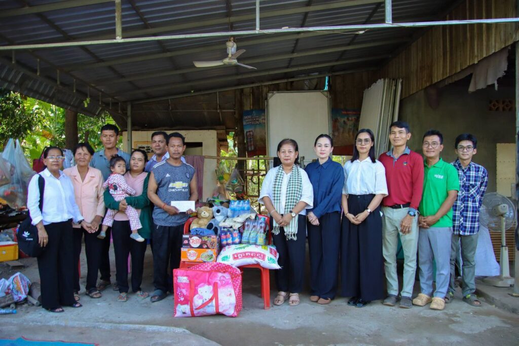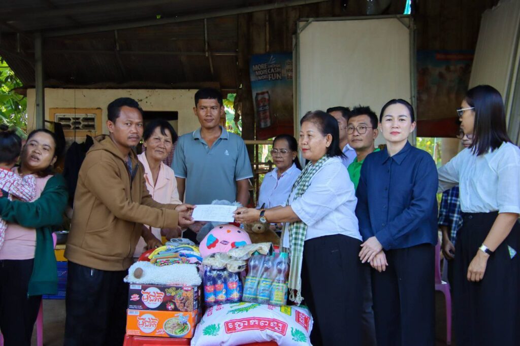កំពង់ចាម÷ ដើម្បីជួយដល់វីរកងទ័ពជួរមុខកម្ពុជា ដែលកំពុងប្រយុទ្ធជាមួយសត្រូវឈ្លានពាន តស៊ូការពារតាមបន្ទាត់ព្រំដែន ហើយតបតាមការអំពាវនាវរបស់ ឯកឧត្តម អ៊ុន ចាន់ដា អភិបាលនៃគណៈអភិបាលខេត្តកំពង់ចាម ឲ្យយកចិត្តទុកដាក់ជួយដល់វីរៈកងទ័ព និងជនភៀសសឹក នារសៀលថ្ងៃទី១៧ ខែធ្នូ ឆ្នាំ២០២៥ លោកស្រី សម ផល្លា ប្រធាន មន្ទីរព័ត៌មានខេត្តកំពង់ចាម រួមជាមួយ ក្រុមកាងារមន្ទីរព័ត៌មាន និងសប្បុរសជន បាននាំយកអំណោយ ជាគ្រឿងឧបភោគបរិភោគ សំភារៈប្រើប្រាស់ និងថវិកា មកប្រគល់ជូន លោក ចៀន ពិរុន ដែលជាទាហាន នៅភូមិភាគ២ ទៅបម្រើការងារនៅ ប្រាសាទតាក្របី ផ្នែកដឹកជញ្ជូនស្បៀនឲ្យកងទ័ព សព្វថ្ងៃកំពុងសម្រាកព្យាបាលជំម្ងឺនៅផ្ទះ ស្ថិតនៅភូមិ ចំការខ្ពប សង្កាត់សំបួរមាស ក្រុងកំពង់ចាម ។