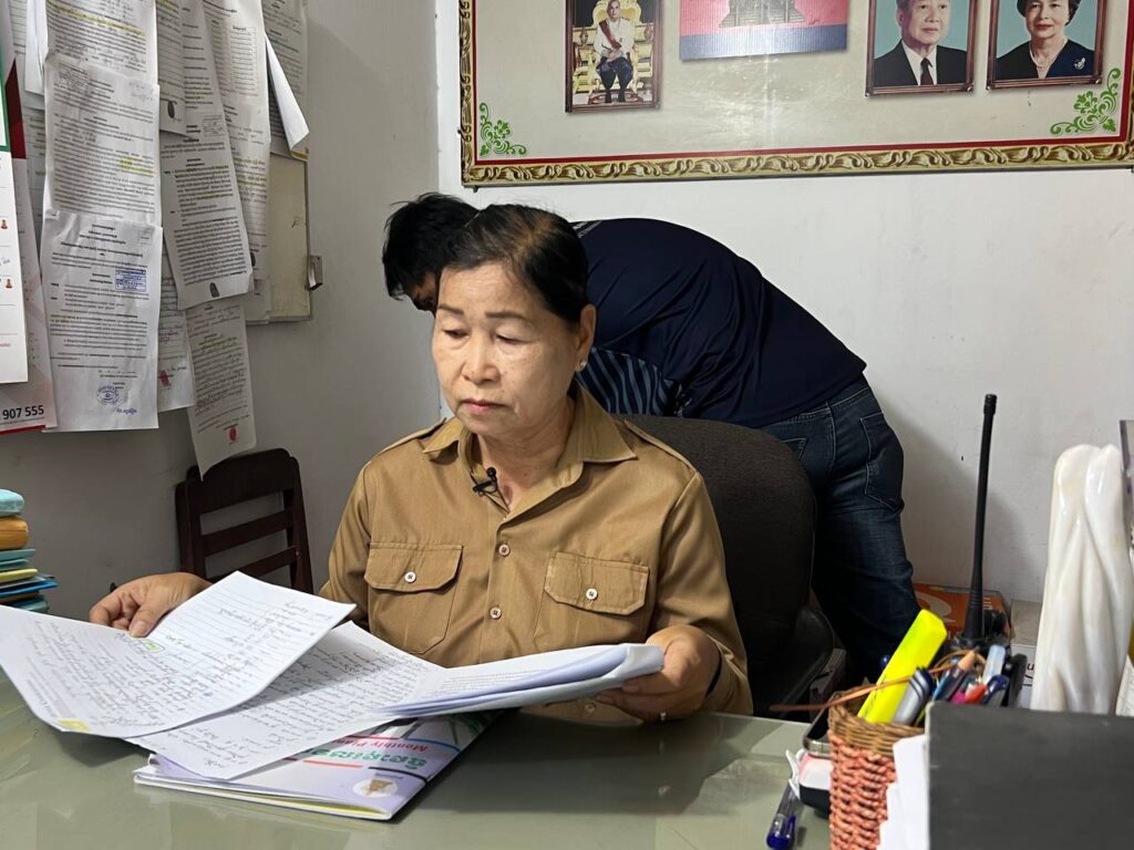 អ្នកស្រី ចាន់វល័ក្ដ ដែលបាននាំកូនពីរនាក់មកចុះសំបុត្រកំណើតកំពុងផ្ដល់សម្ភាសន៍បទសម្ភាសន៍ ក្រោយពីបានចុះបញ្ជីអត្រានុកូលដ្ឋានរួចនៅសង្កាត់កាកាប១ ខណ្ឌពោធិ៍សែនជ័យ