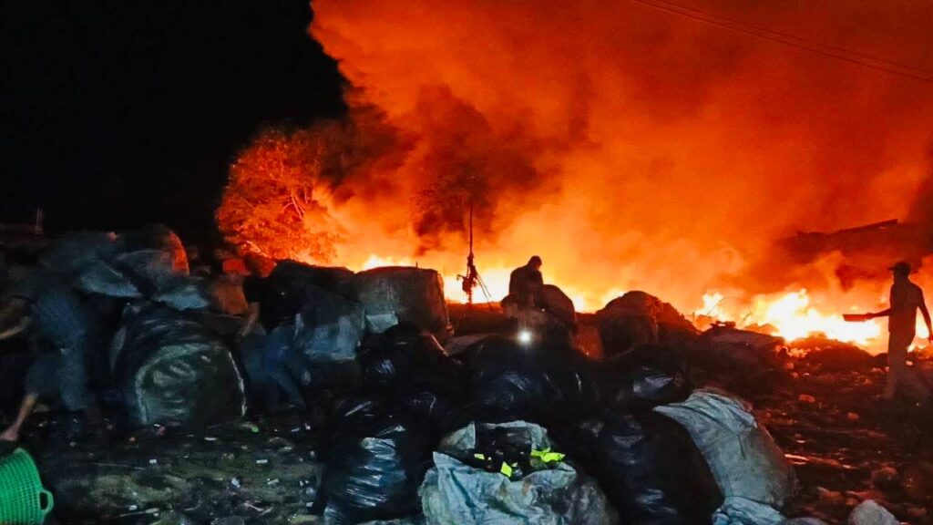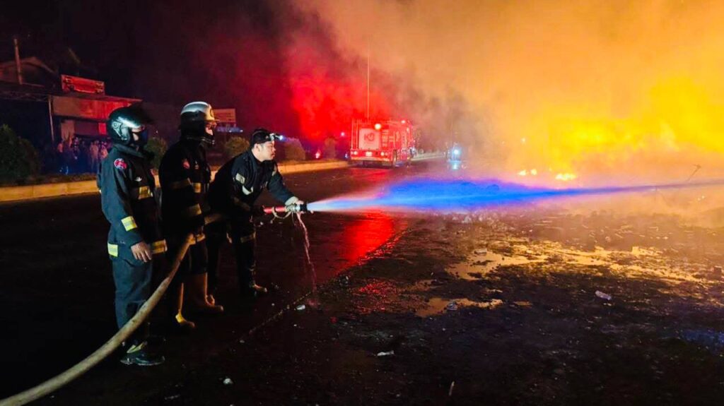 ភ្នំពេញ ៖ ទីតាំងទិញលក់អេតចាយមួយកន្លែងត្រូវបានអគ្គិភ័យឆាបឆេះសន្ធោសន្ធៅ ដោយសារឆ្លងចរន្តអគ្គសនី បង្កឱ្យភ្ញាក់ផ្អើល កាលពីវេលាម៉ោង២និង៣០នាទីរំលងអធ្រាត្រចូលថ្ងៃទី២៤ ខែធ្នូ ឆ្នាំ២០២៥ ស្ថិតនៅតាមផ្លូវ៥០ម៉ែត្រ ក្នុងភូមិបាគូ សង្កាត់ដង្កោ ខណ្ឌដង្កោ រាជធានីភ្នំពេញ។