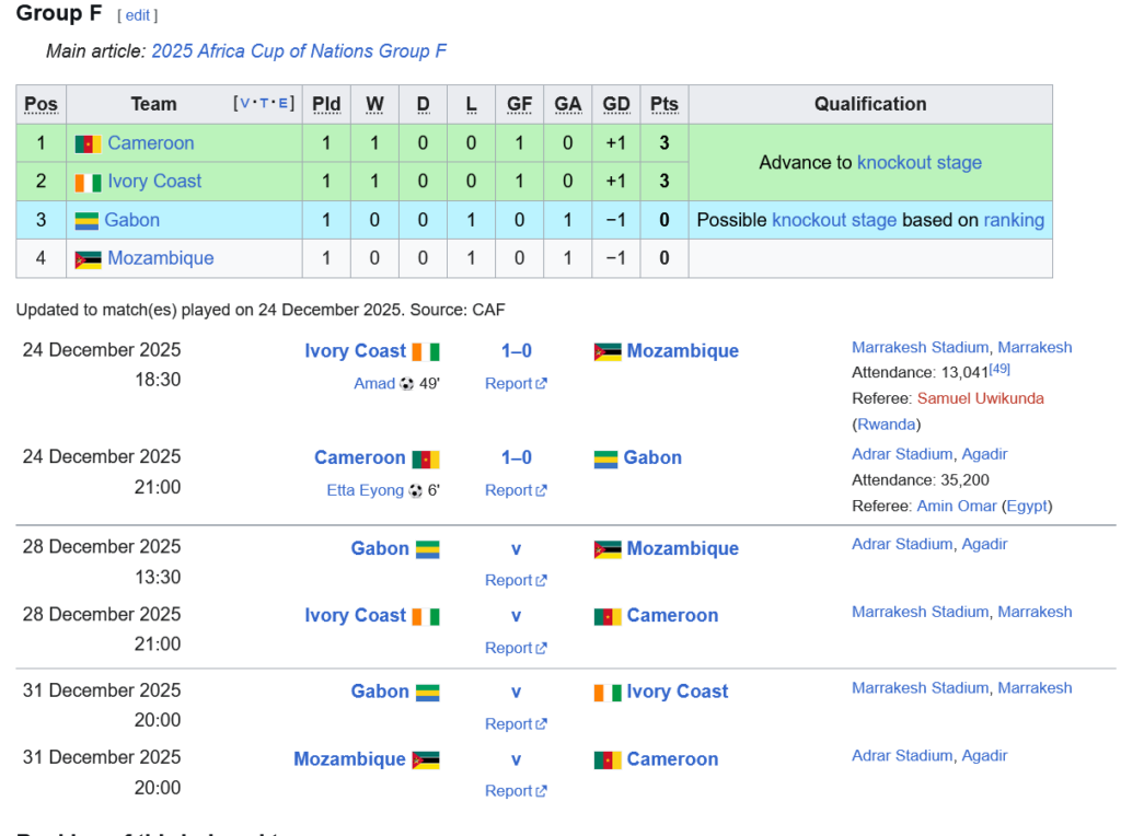 លទ្ធផលប្រកួតបើកឆាកពានរង្វាន់បាល់ទាត់ធំជាងគេប្រចាំទ្វីបអាហ្វ្រិក Africa Cup of Nations 2025៖