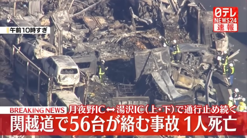 តាមរបាយការណ៍បច្ចុប្បន្នភាពនៃគ្រោះថ្នាក់ចរាចរណ៍រថយន្តបុករះបន្តគ្នាជាង ៥៦ គ្រឿងលើផ្លូវល្បឿនលឿនក្នុងប្រទេសជប៉ុន ត្រូវបានដោះស្រាយ និងសម្អាតរួចរាល់ទាំងស្រុងក្នុងរយៈពេលត្រឹមតែ ៤១ ម៉ោងប៉ុណ្ណោះ។