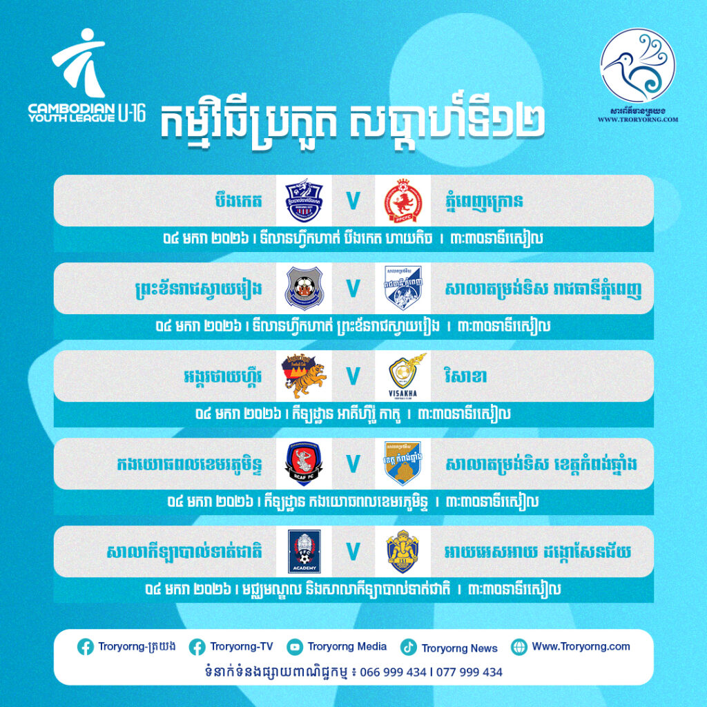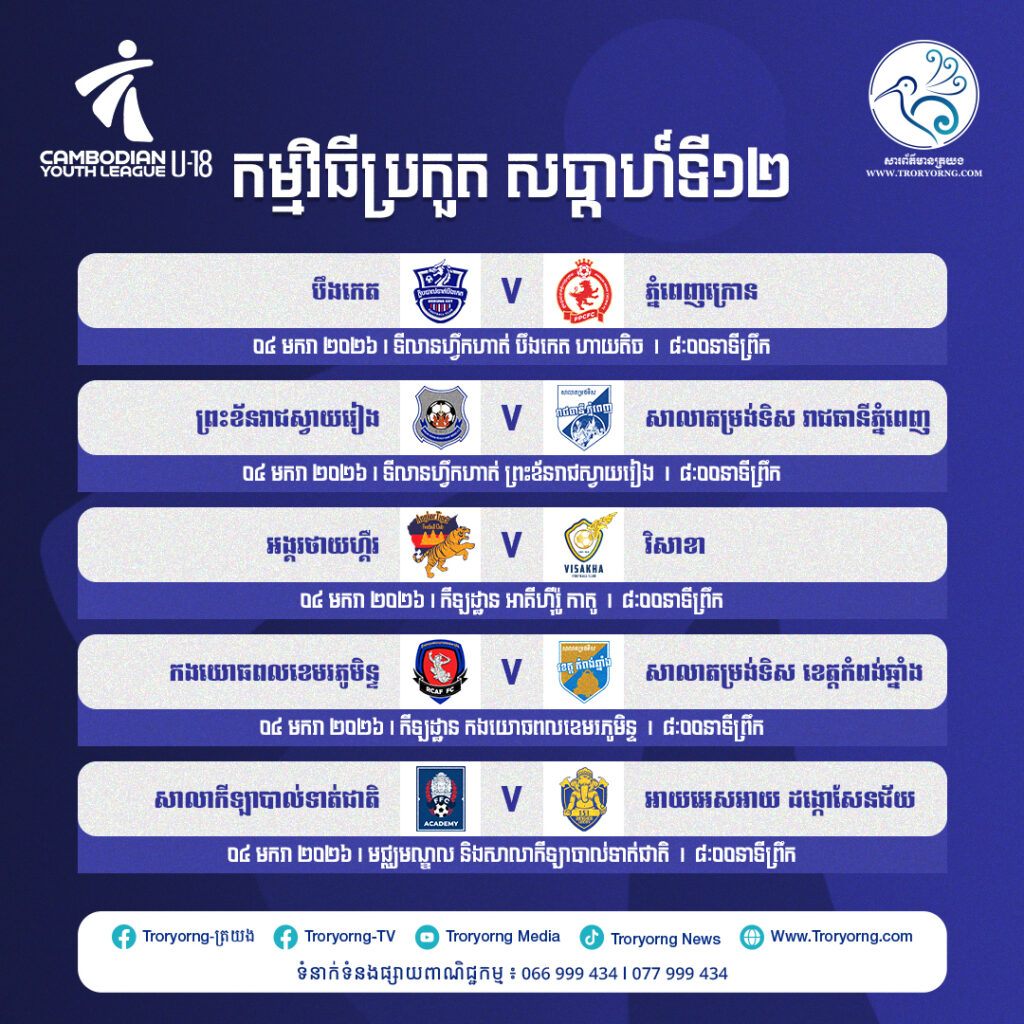 កម្មវិធីប្រកួត សប្ដាហ៍ទី១២ ថ្ងៃអាទិត្យ ទី៤ ធ្នូនេះ៖