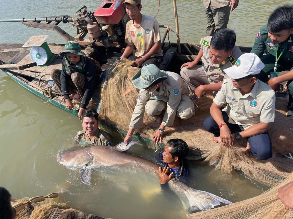 កំពង់ចាម: ខណ្ឌរដ្ឋបាលជលផលកំពង់ចាម បានលែងត្រីរាជ ទម្ងន់ ៦៣គីឡូក្រាម លែងចូលក្នុងទន្លេវិញ ក្រោយទទួលបានព័ត៌មានពីប្រជានេសាទ ដោយនេសាទត្រីនេះបាន នៅថ្ងៃទី៣ ខែមករា ឆ្នាំ២០២៦នៅចំណុចតាមដងទន្លេមេគង្គ ភូមិពង្រ ឃុំរកាគយ ស្រុកកងមាស ខេត្តកំពង់ចាម។