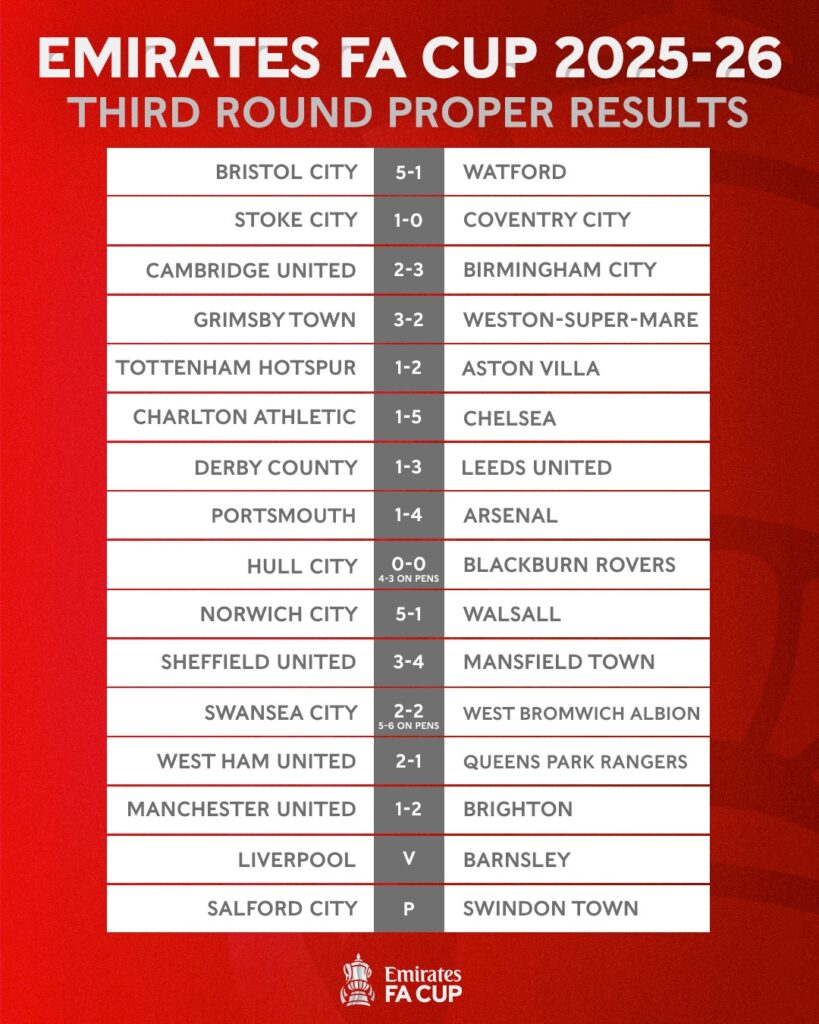លទ្ធផលជុំទី៣ នៃពានរង្វាន់ FA Cup 2025-26៖