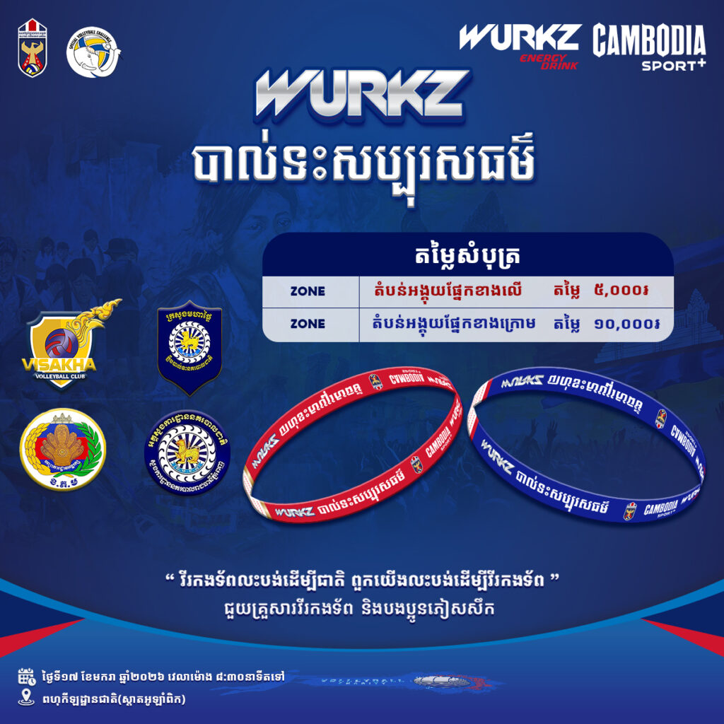គួរបញ្ជាក់ថា កម្មវិធីប្រកួតកីឡាបាល់ទះ «WURKZ បាល់ទះសប្បុរសធម៌ » មានក្លិបបាល់ទះធំៗ ចំនួនចូលរួម រួមមាន៖ សមាគមកីឡាបាល់ទះវិសាខា សមាគមកីឡាបាល់ទះក្រសួងមហាផ្ទៃ ក្លិបបាល់ទះបញ្ជាការដ្ឋានអង្គរក្ស និងក្លិបបាល់ទះស្នងការរាជធានីភ្នំពេញ។ ការប្រកួតរៀចចំឡើង ១ថ្ងៃប៉ុណ្ណោះ នៅថ្ងៃទី១៧ ខែមករា ឆ្នាំ២០២៦ វេលាម៉ោង ៨:៣០នាទីព្រឹកតទៅ នៅទីលានកីឡាបាល់ទះក្នុងវិមាន នៃពហុកីឡដ្ឋានជាតិអូឡាំពិក៕